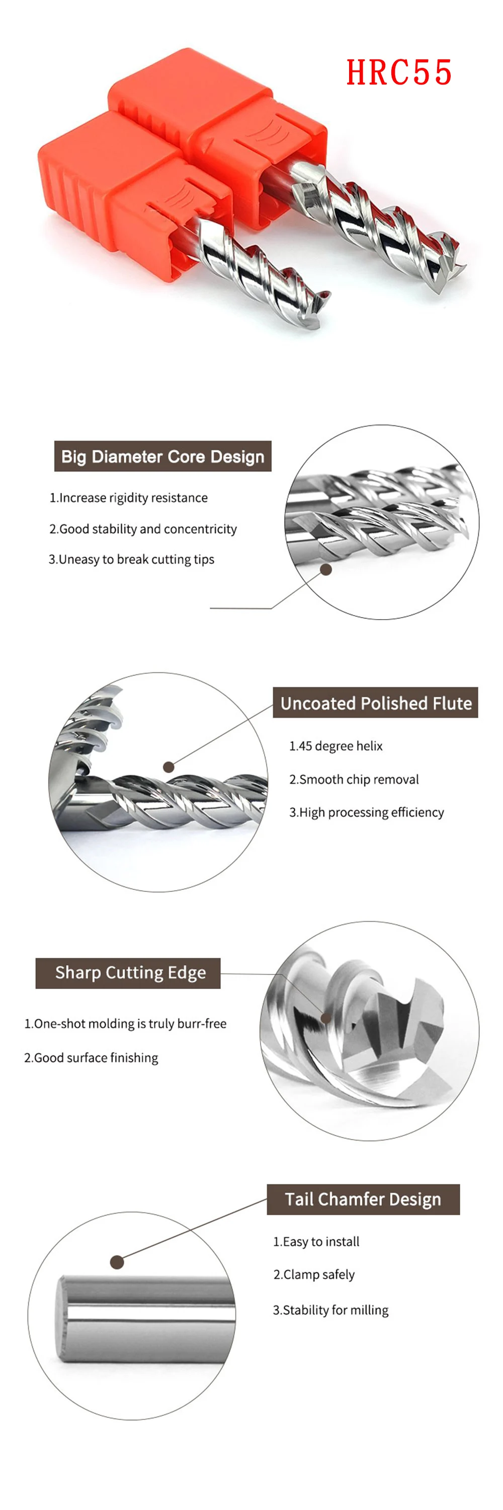 Фреза из карбида вольфрама с 3 канавками, инструмент для ЧПУ, инструменты для деревообработки, алюминия, стекловолокна, акрила, дерева, меди, пластика
