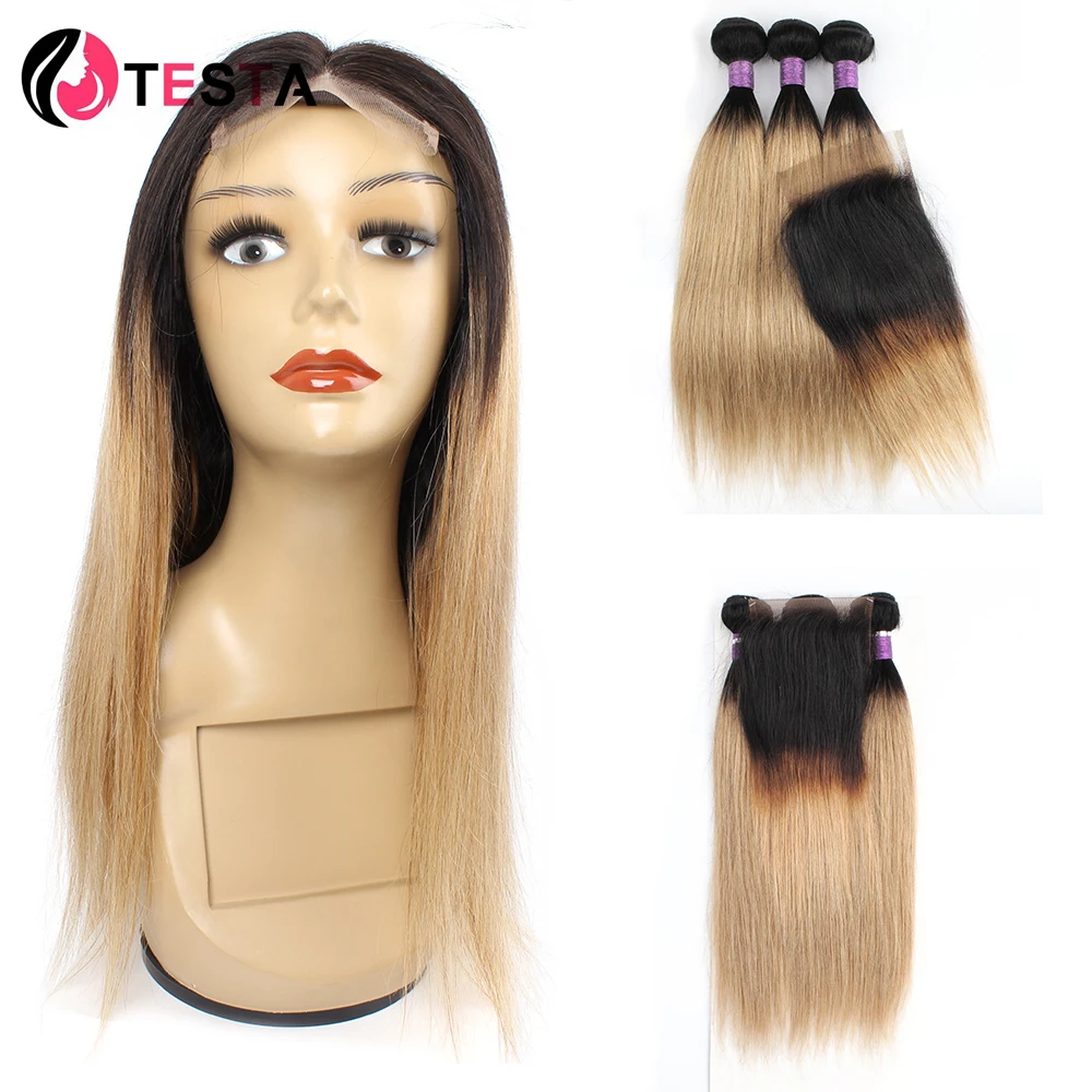 Прямые бразильские волосы Testa 1b27 1B30, волнистпряди с фронтальным человеческим волосом, пряди с 4*1 кружевной застежкой, Remy наращивание волос