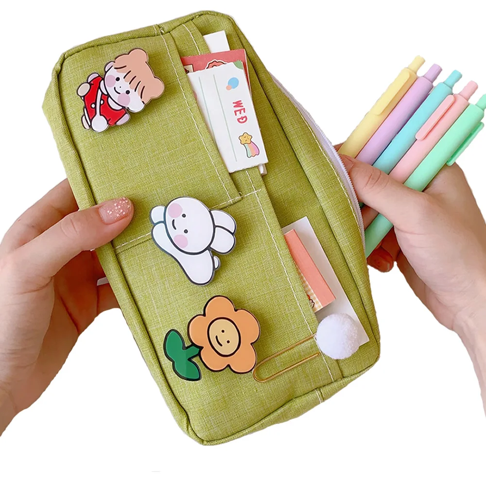 Однотонная простая вместительная сумка для карандашей, 24 цвета, милый вместительный чехол для карандашей для учеников, милая фотография