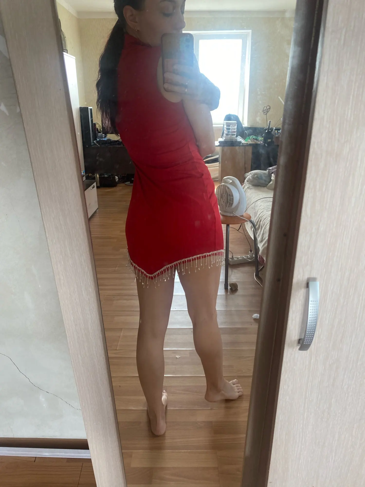 Платье классное. На размер S взяла его же, подошёл идеально. Бусины снизу качественные. Коротковато, но не критично. Доставка 2 недели до Красноярска.