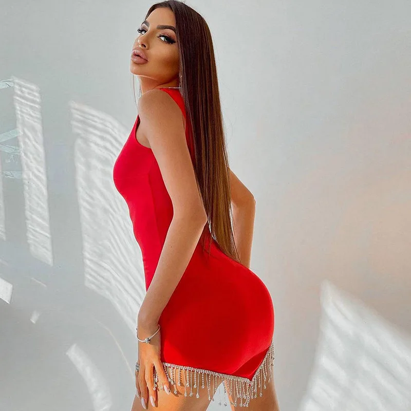 2022 модное женское сексуальное элегантное платье-футляр с бахромой, женское однотонное облегающее мини-платье без рукавов, Клубное вечервечерние платье