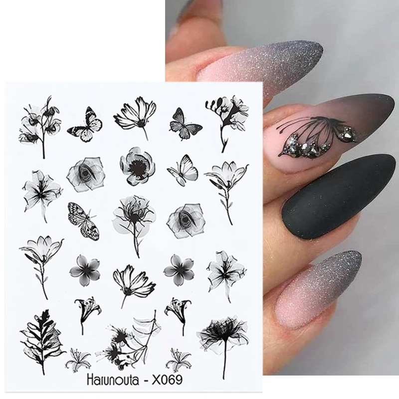 Наклейка для ногтей Harunouta, черная, белая бабочка, геометрические наклейки, цветок, золотой, для творчества, наклейки для дизайна ногтей, маникюр, Декор