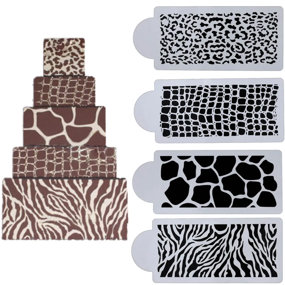 4 шт.компл. трафарет для торта в стиле зебры с леопардовым принтом, Аэрограф, конфеты с животными, помадки, формы для украшения торта, Мусса