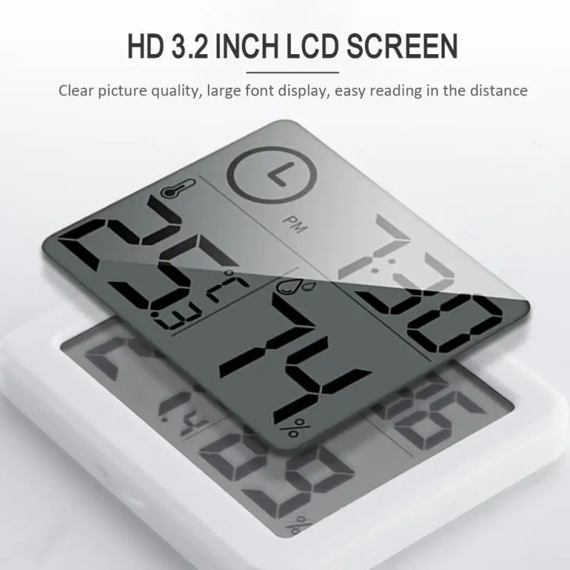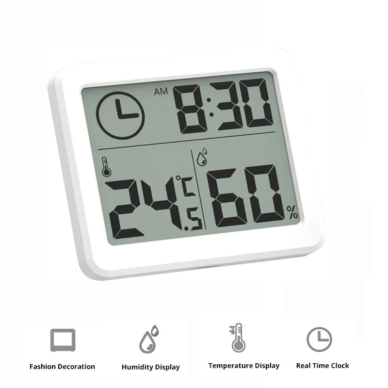 Цифровая метеостанция, ультратонкий Термометр-Гигрометр 3 в 1 с ЖК дисплеем, измеритель влажности и температуры в помещении, с часами