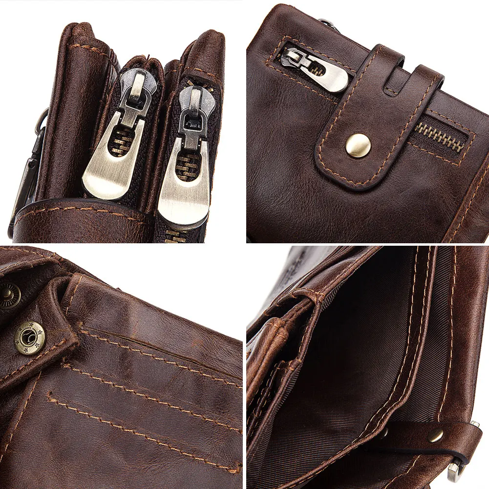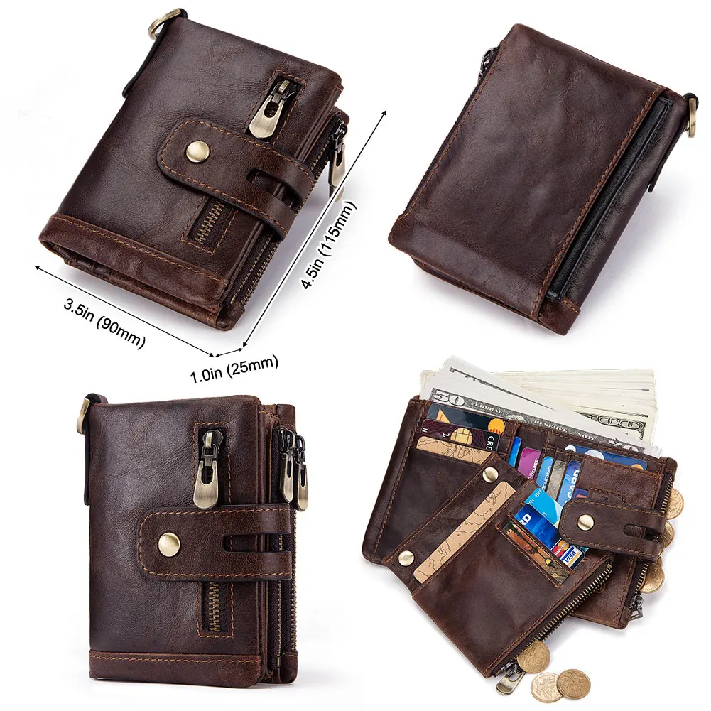 Кошелек мужской из натуральной кожи, с RFID-защитой и двойной молнией