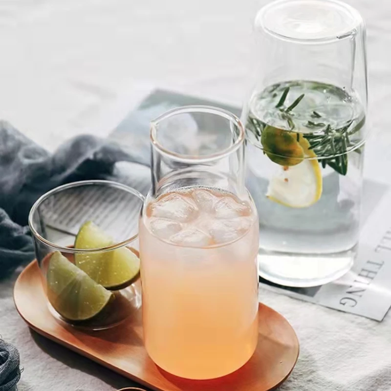 Стеклянная бутылка для воды со стеклянной чашкой, набор холодного чайника, бытовая бутылка для питьевой воды, семейный набор чашек для напитков и чая