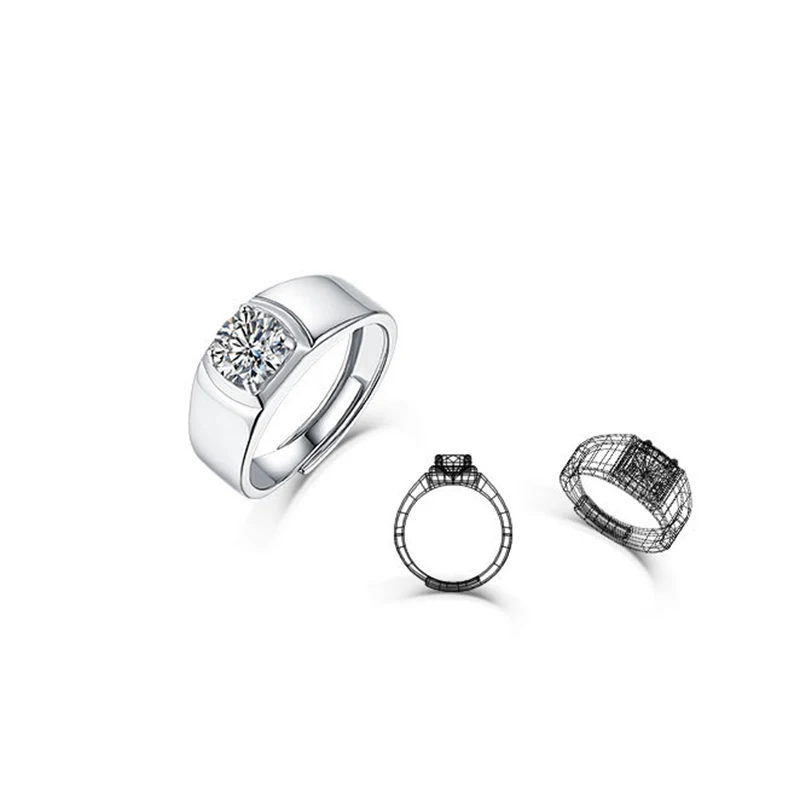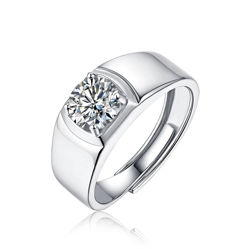 Кольца мужские из серебра 100% пробы, с мусанитом, 1 карат, 7 мм