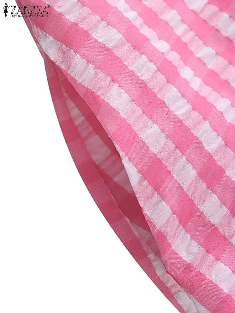Весна 2022, Пляжное Платье ZANZEA в клетку, Повседневный Сарафан с ...