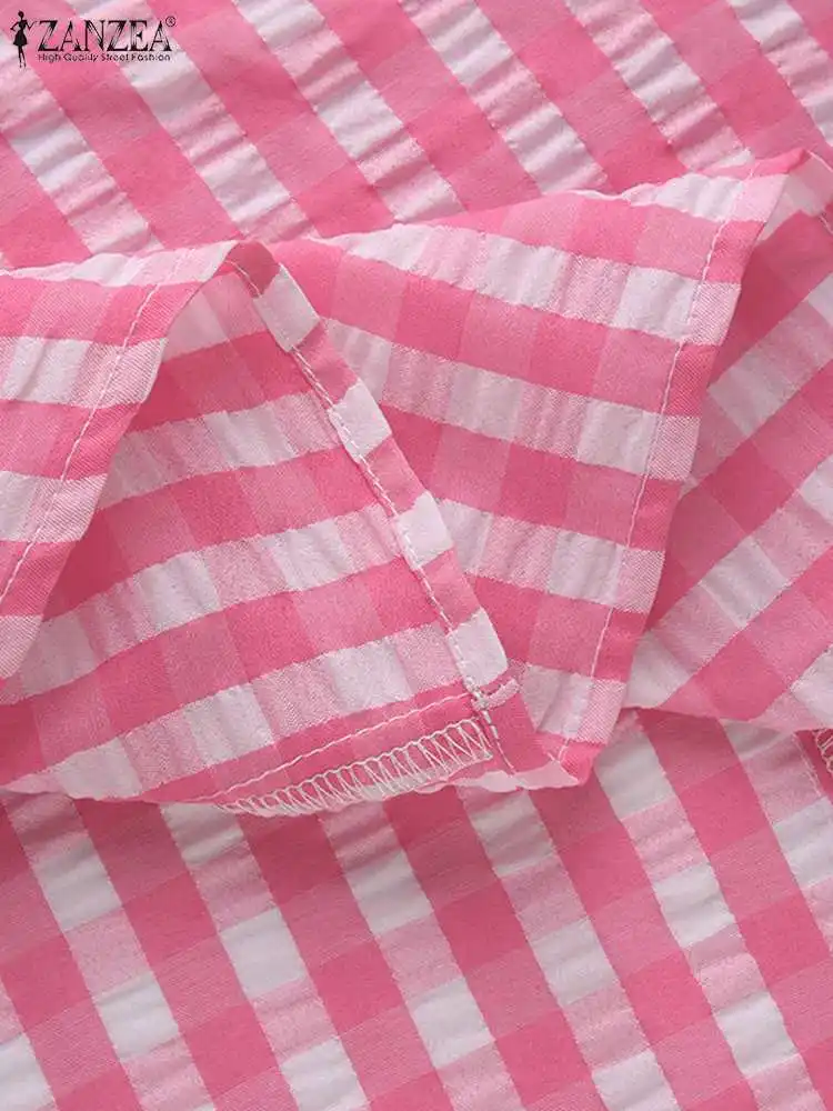 Платье ZANZEA женское клетчатое в клетку, модный праздничный свобод...