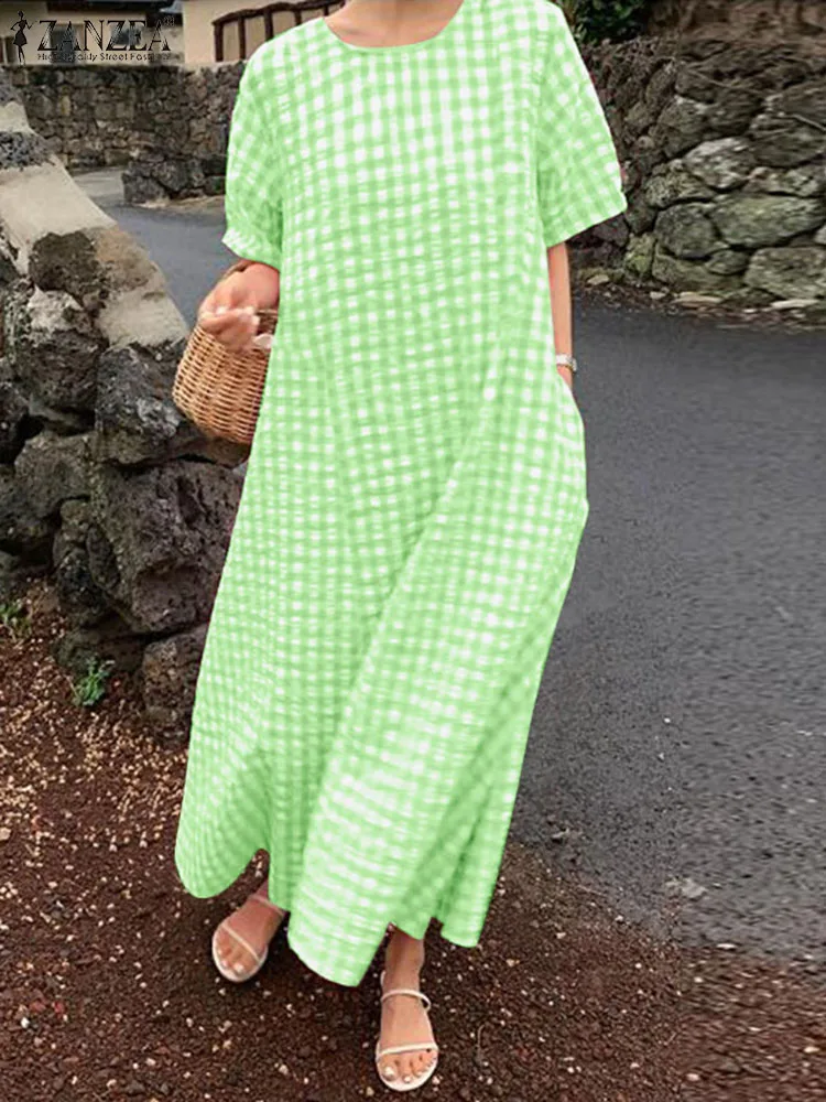 Элегантное клетчатое платье ZANZEA с принтом, женский летний сарафа...