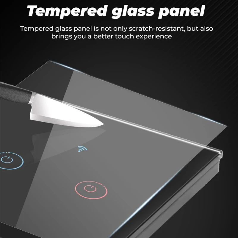 【Чувствительный сенсорный контроль 】 сенсорный экран из закаленного стекла этого Смарт-переключателя чувствителен к касанию управления, высококачественный прочный стеклянный материал обеспечивает до 20 миллионов сенсорных фигур через наше тщательное тестирование. Водонепроницаемый, влагостойкий, устойчив к царапинам.
