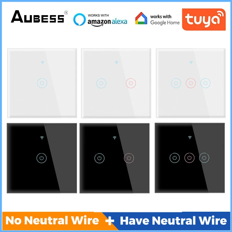 Умный сенсорный выключатель Aubess, ЕС, 1234 клавиши, Wi-Fi, 433 МГц, Настенные переключатели с нейтральнымбез нейтрального режима, работает с Tuya Alexa Google Home