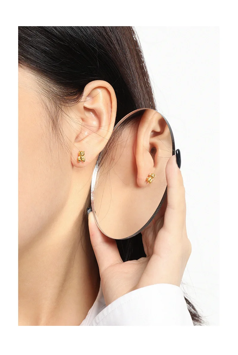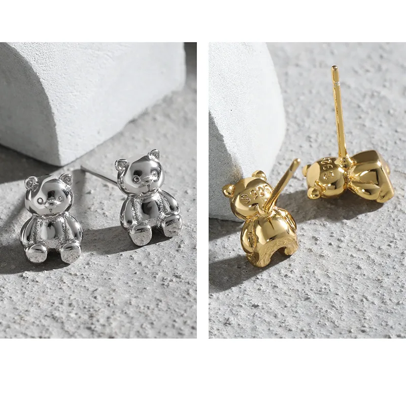 Серьги-гвоздики yizai в Корейском стиле с милым мультяшным медведем для женщин, золотистые и Серебристые серьги-гвоздики, ювелирные изделия, Лидер продаж, подарочные украшения