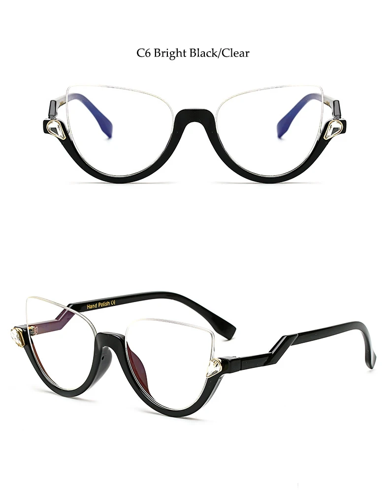 Женские очки в полуоправе, винтажные очки кошачий глаз с фильтром с...