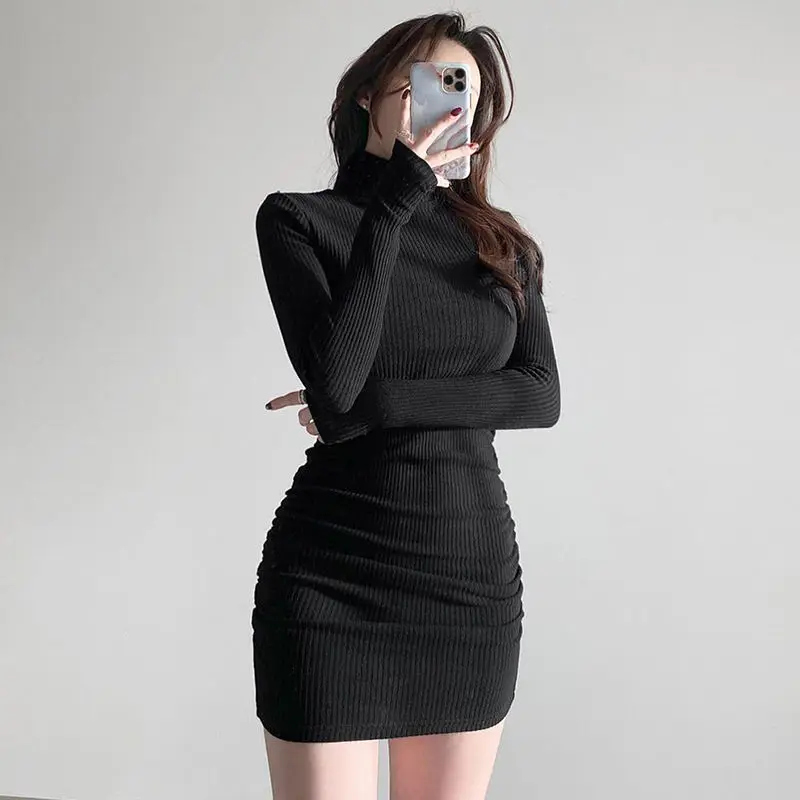 Женское Короткое платье-футляр с длинным рукавом, в рубчик