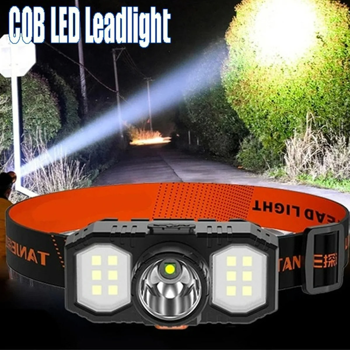 Налобный фонарь с COB матрицей, суперъяркий фонарь на голову, уличн...