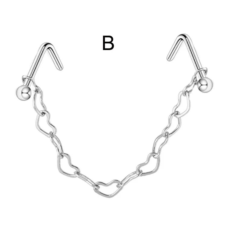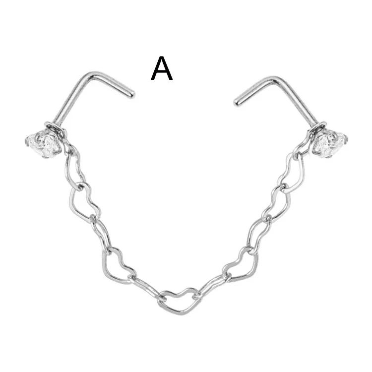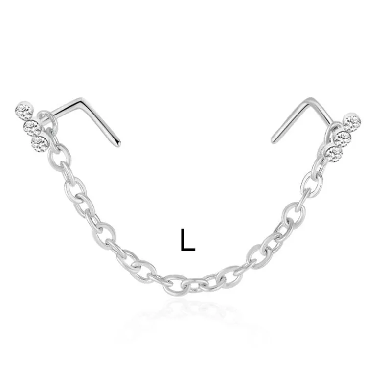 Новая Двойная Цепочка для пирсинга в ноздре, серьги из нержавеющей ...