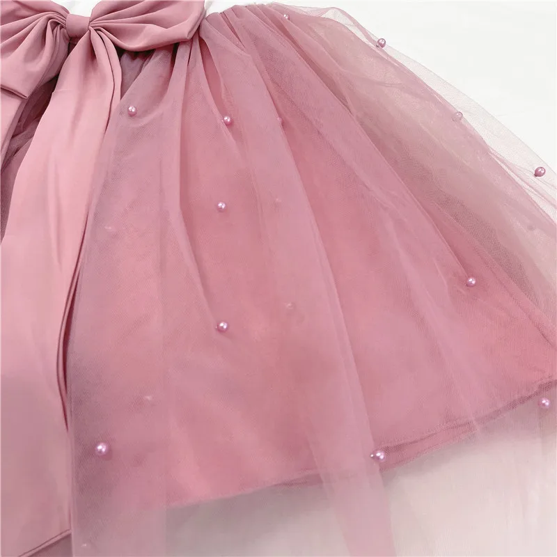Милое Платье для девочек на вечерние ринку, элегантное платье для маленьких девочек, Сетчатое женское платье на день рождения, платье-пачка с бантом, детское платье из тюля