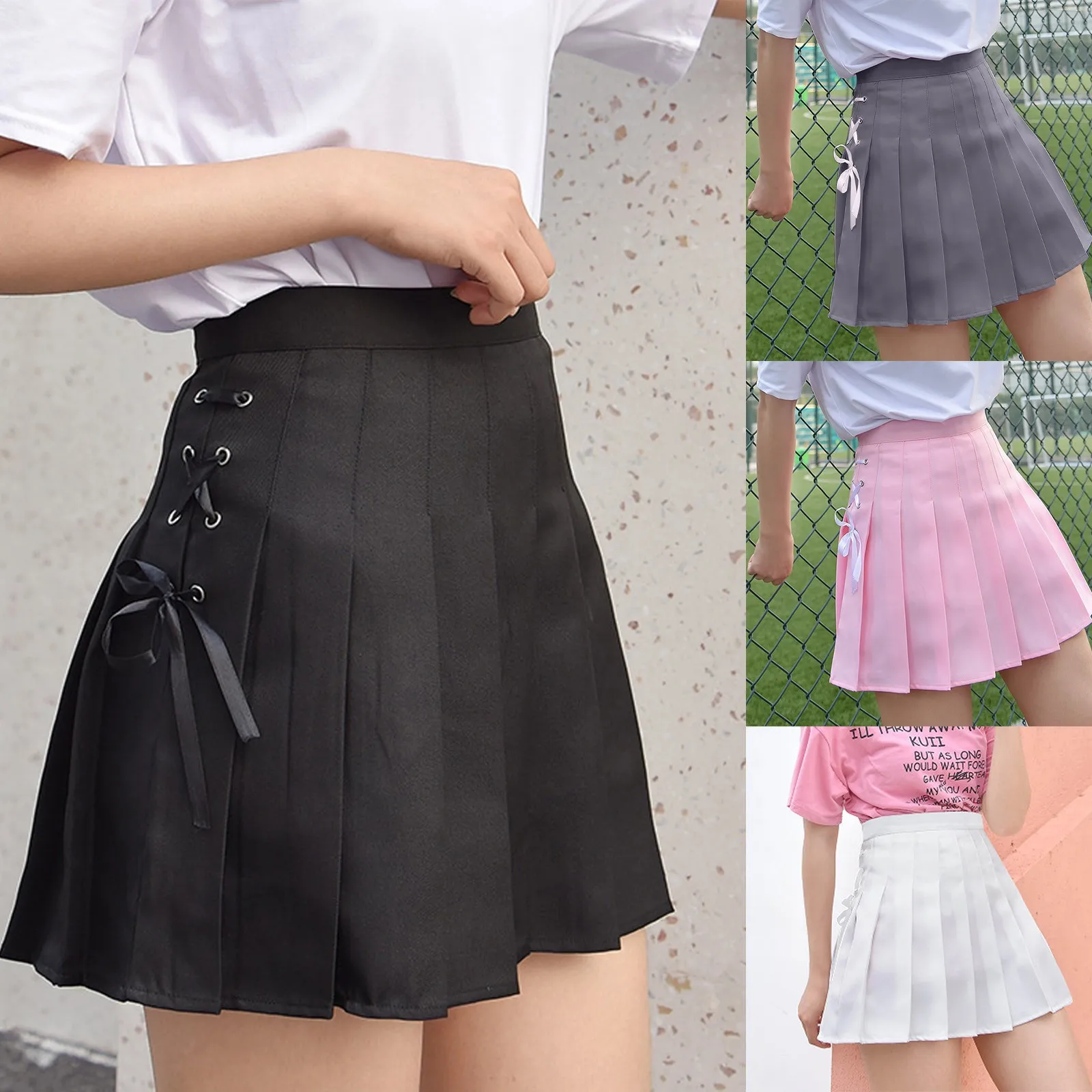 Модные женские мини-юбки JAYCOSIN в стиле преппи, однотонная плиссированная трапециевидная юбка на шнуровке, короткая юбка с завышенной талией
