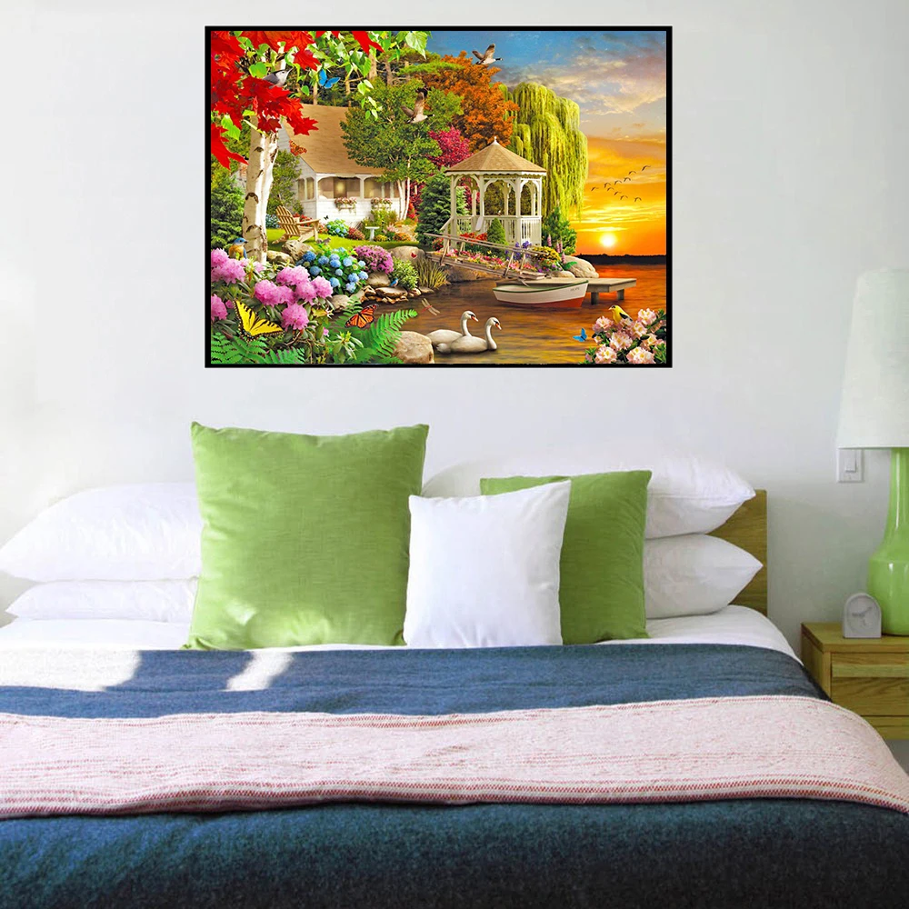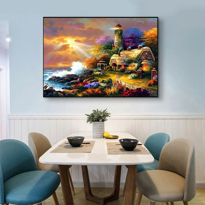 Алмазная 5D картина сделай сам, пейзаж, закат, пляж, Набор для вышивки крестиком, полная вышивка, пейзаж, мозаика, искусство, картина Стразы