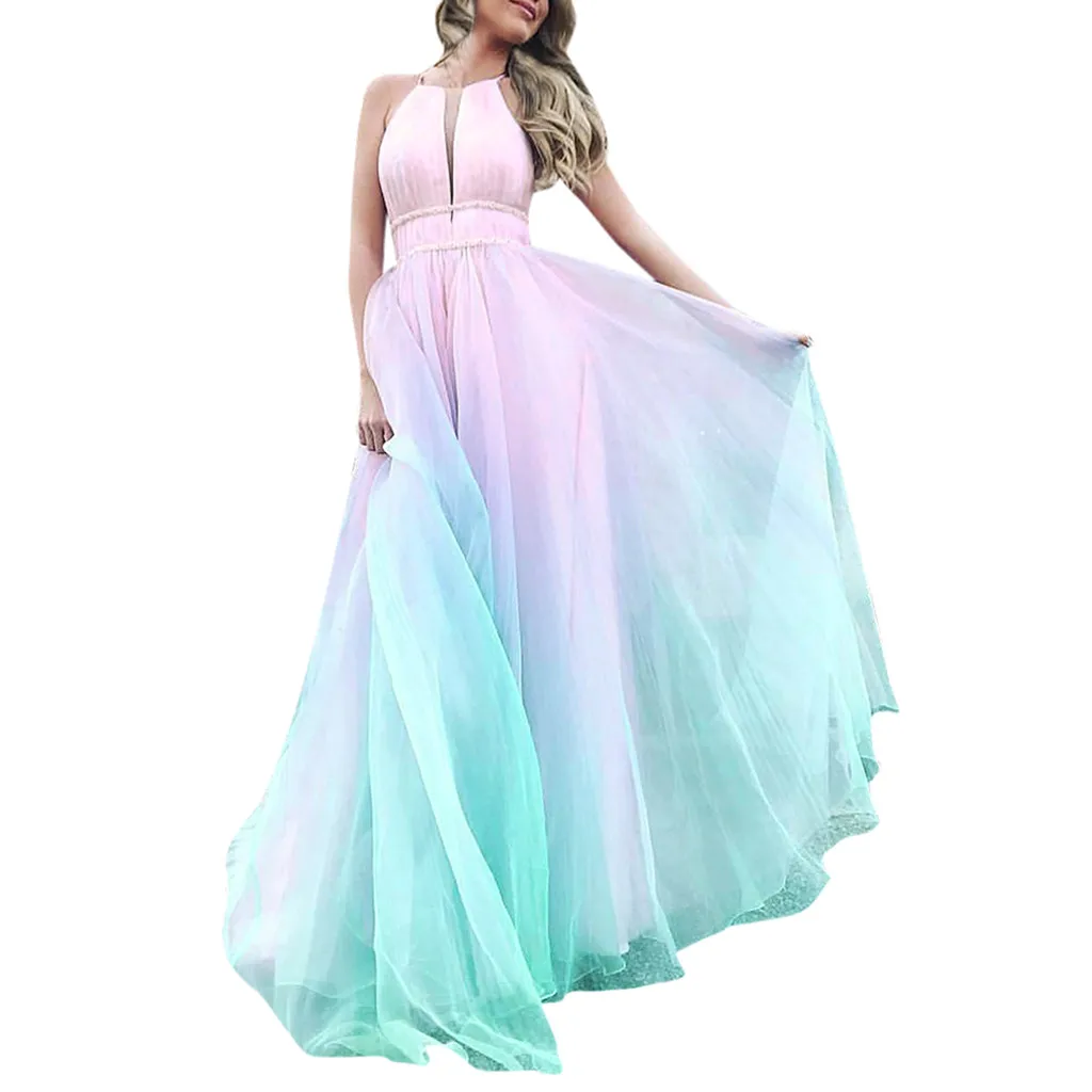 Женское Платье с градиентной сеткой, Пляжное Платье, Женское винтажное Платье с большим свободным кроем для гавайской вечевечерние