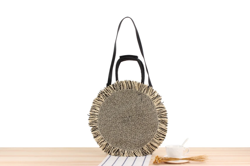 Круглая Соломенная пляжная сумка винтажная ручная тканая сумка чере...