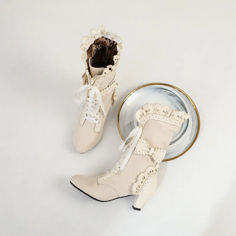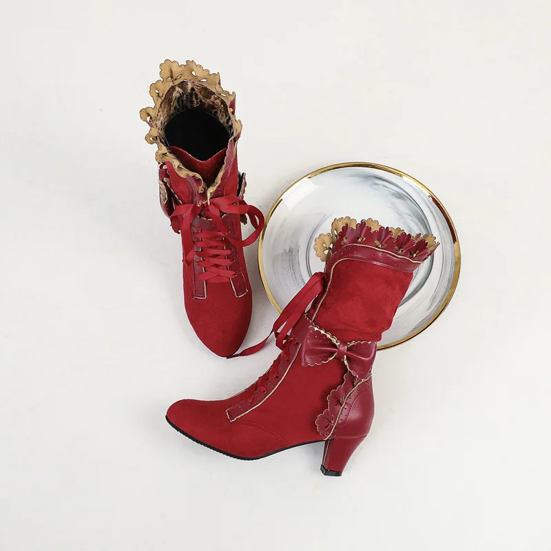 Женские готические ботинки со шнуровкой в средневековом ретро-стиле