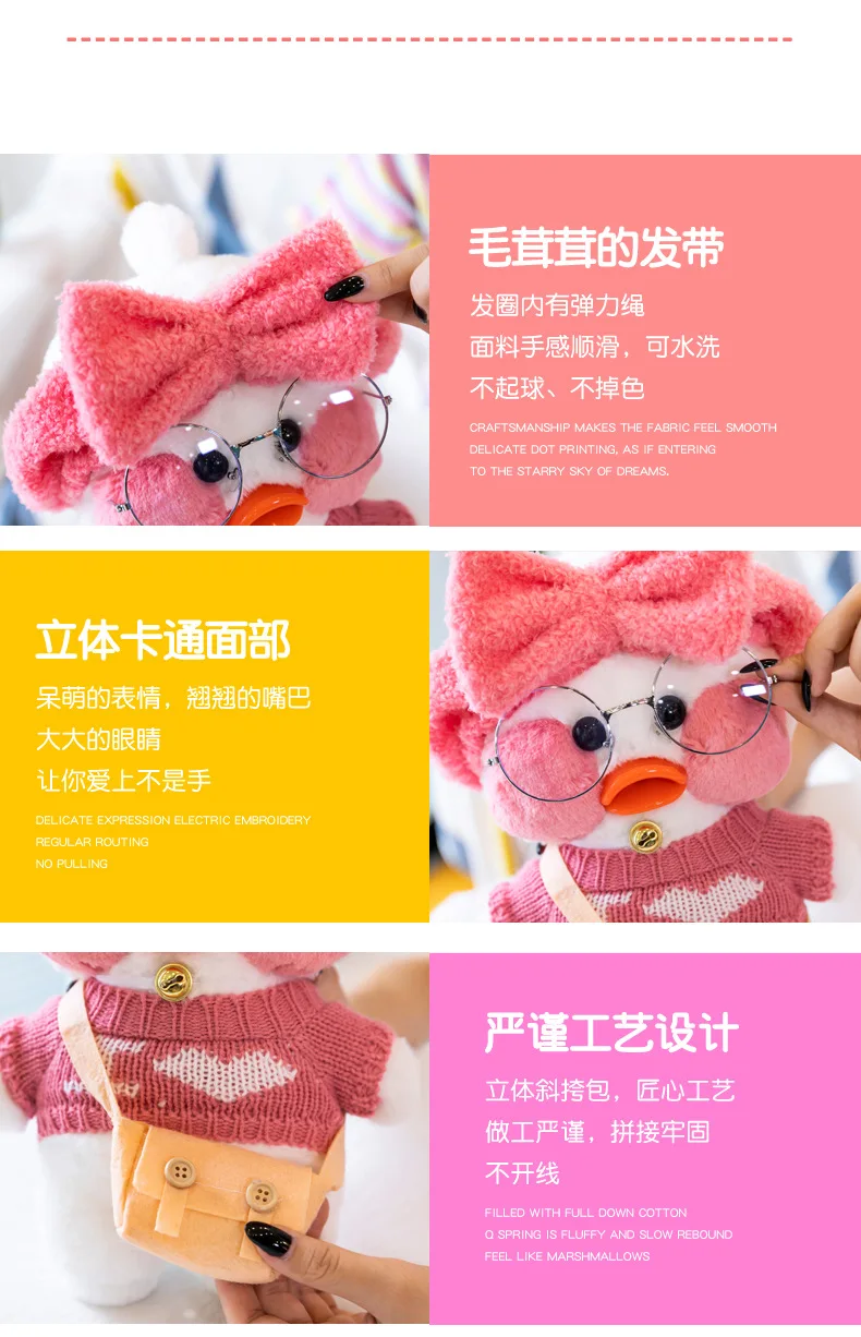 Lalafanfan утка плюшевые игрушки утка Lalafanfan одежда для 30 см Kawaii мягкая игрушка подарокХарактеристики:Категория: плюшУпаковка: opp мешокМатериал наполнения: полипропиленовый хлопокПримечания:Из-за различных огней может быть Хроматическая аберрация.При ручном измерении возможна погрешность в 1-2 см.Если у вас есть какие-либо вопросы о продукте, вы можете связаться с нами.