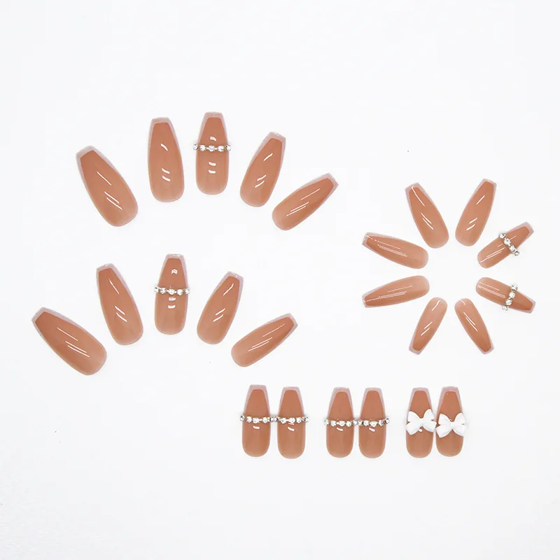 24 шт. накладные ногти с клеем дизайн банта балетный гроб накладные...