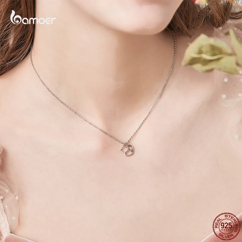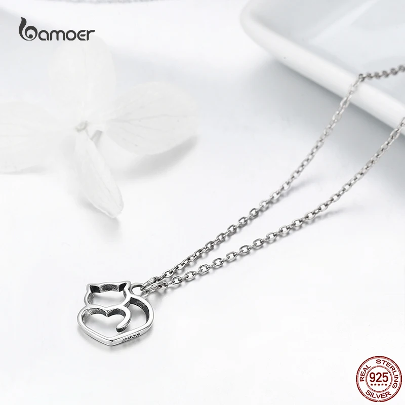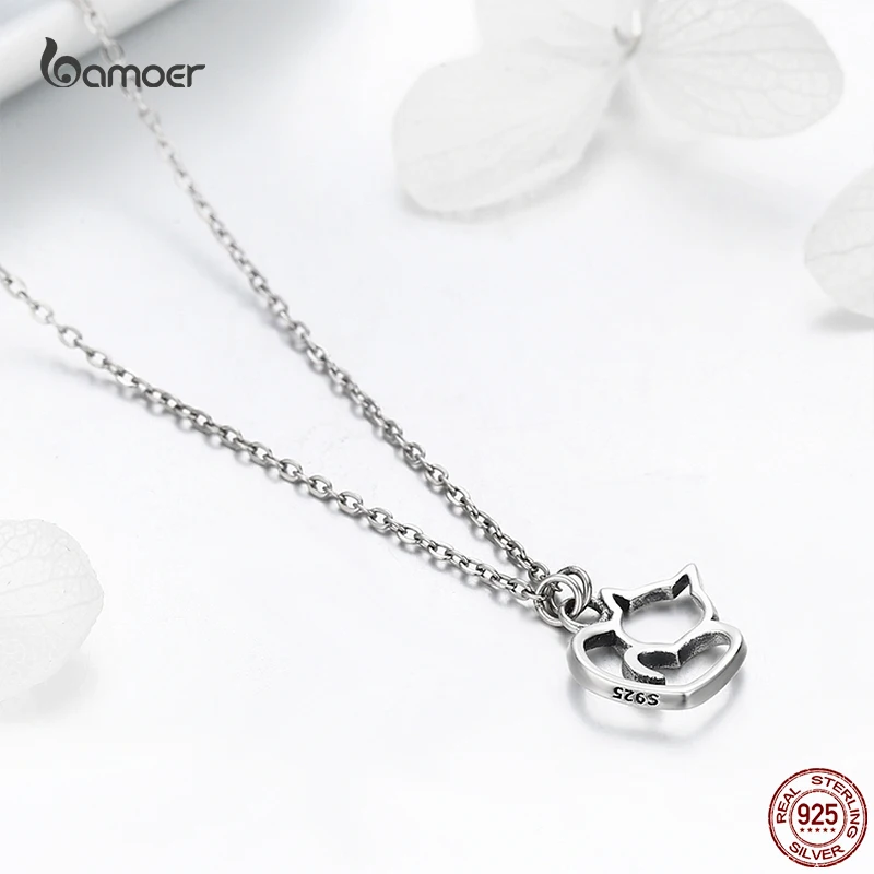 Женское Ожерелье с милым котом Bamoer, серебро 925 пробы, кулон в виде животного, модные Универсальные ювелирные аксессуары
