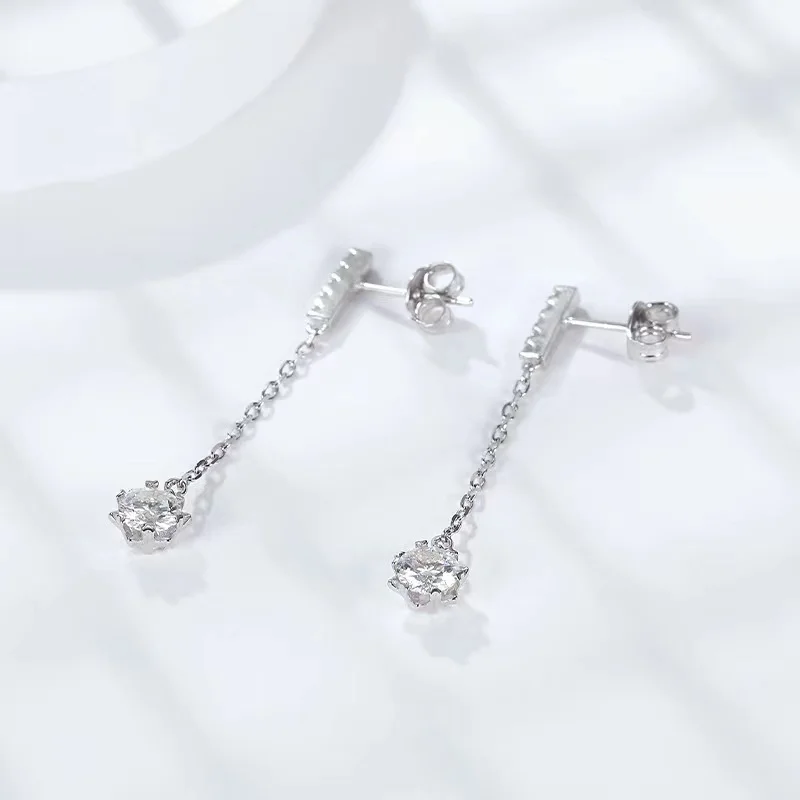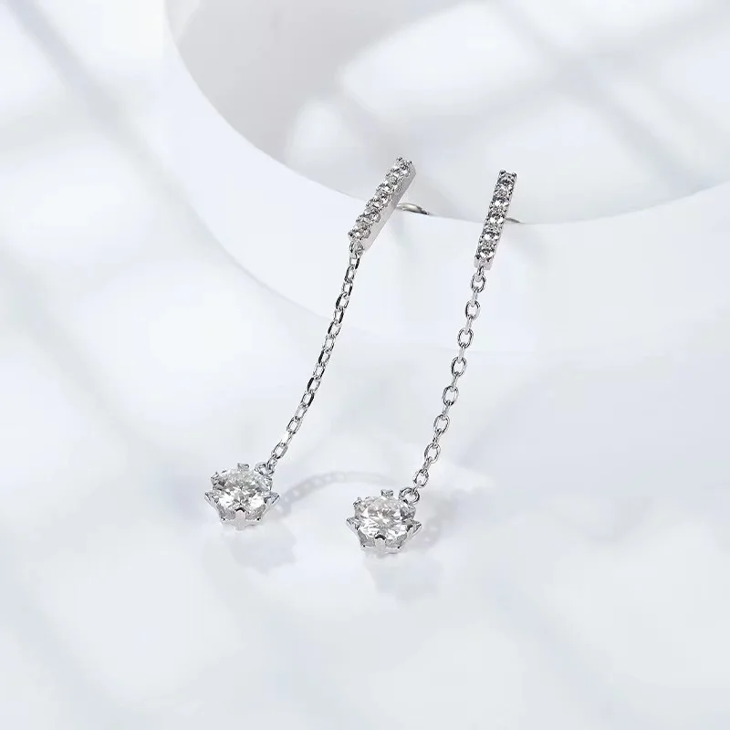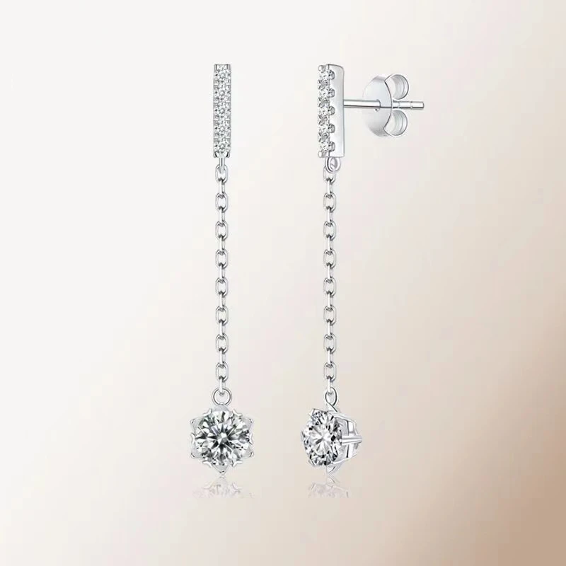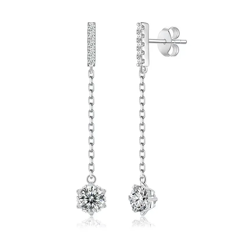 Модные серьги-подвески в виде снежинок с муассанитом VVS1, цвет под серебро карат, с кисточкой и бриллиантами