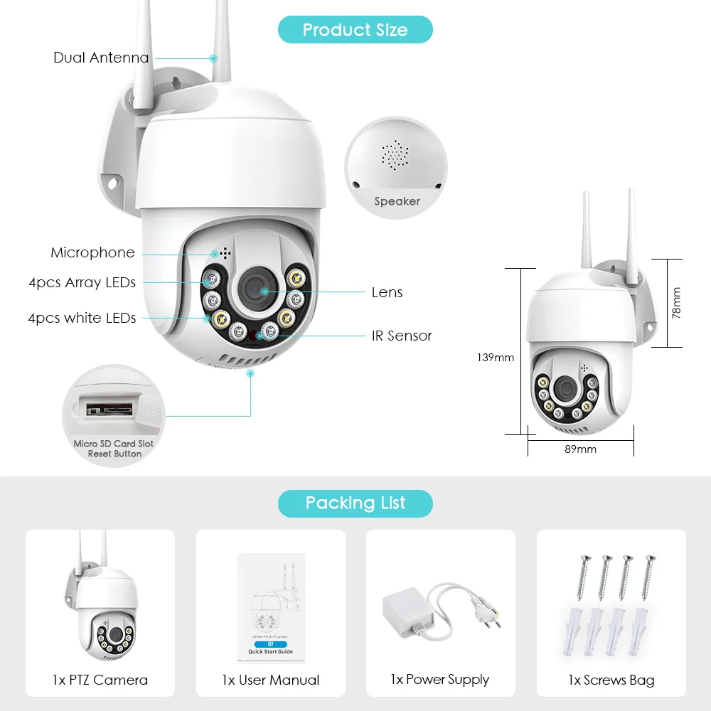 1x PTZ камера1x Руководство пользователя1 источник питания (менее 1 метра)1x Винты сумка