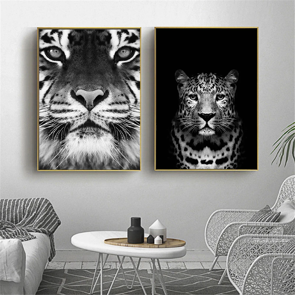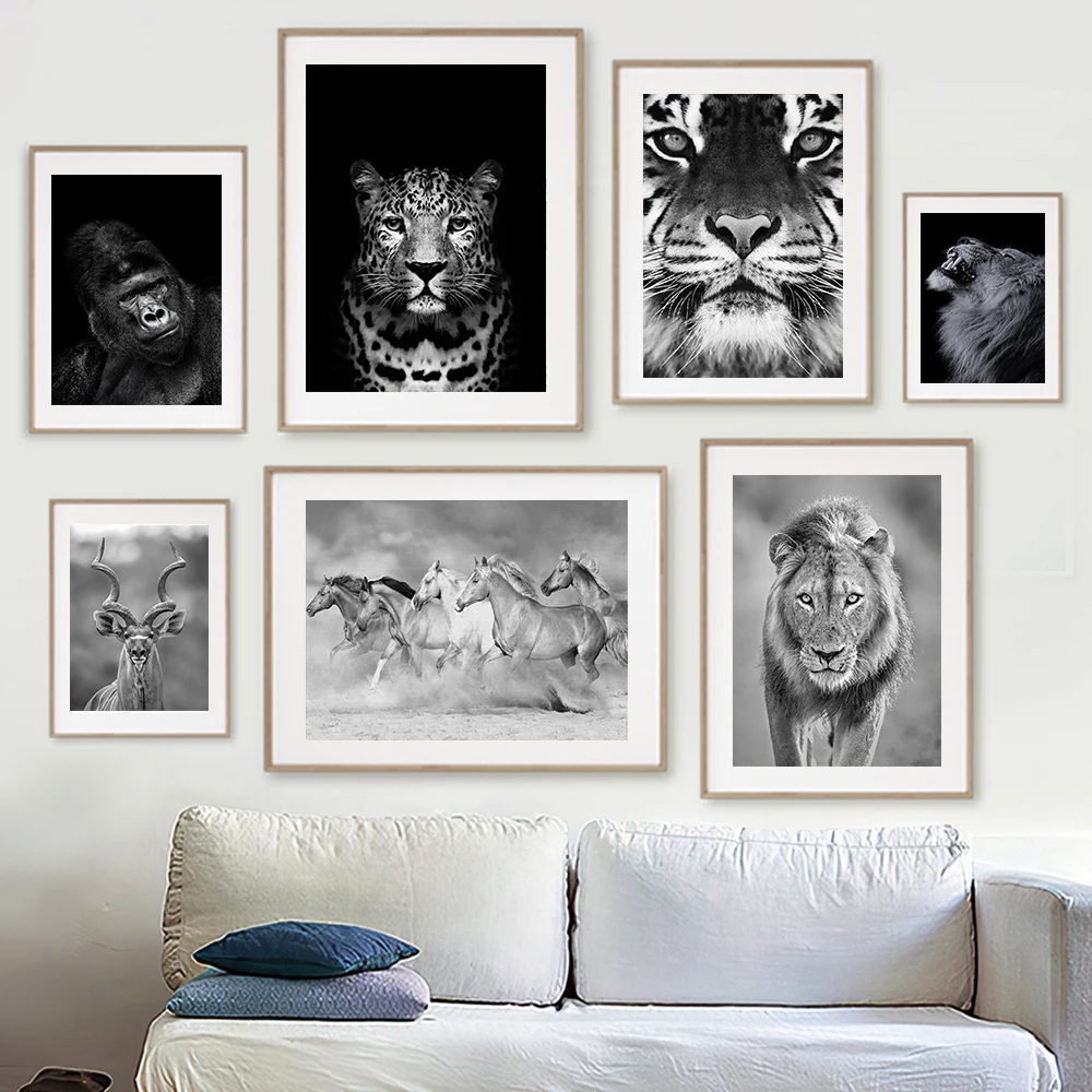 Черно-белый слон Тигр Лев кот собака настенные художественные плакаты Животные Печать на холсте картины для гостиной домашний декор