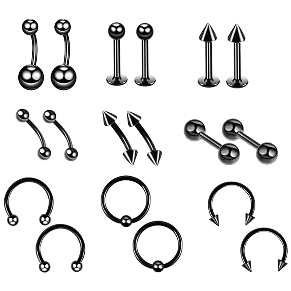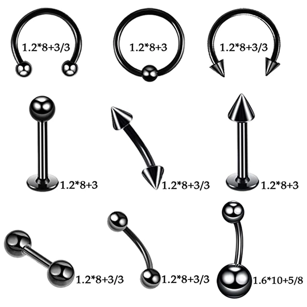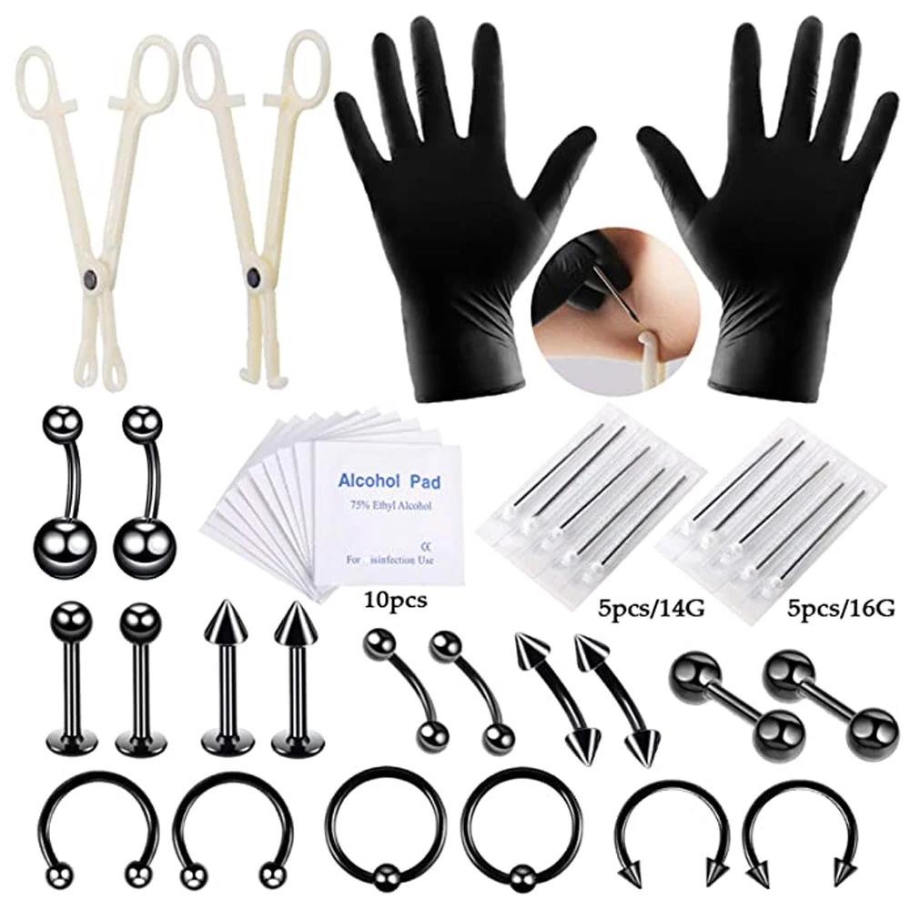 Набор ювелирных украшений для пирсинга тела, набор из 42 профессиональных черных колец для живота, губ, языка, Козелка, 14 г, 16 г