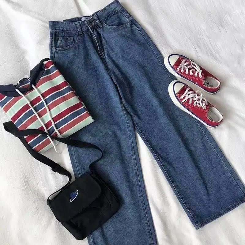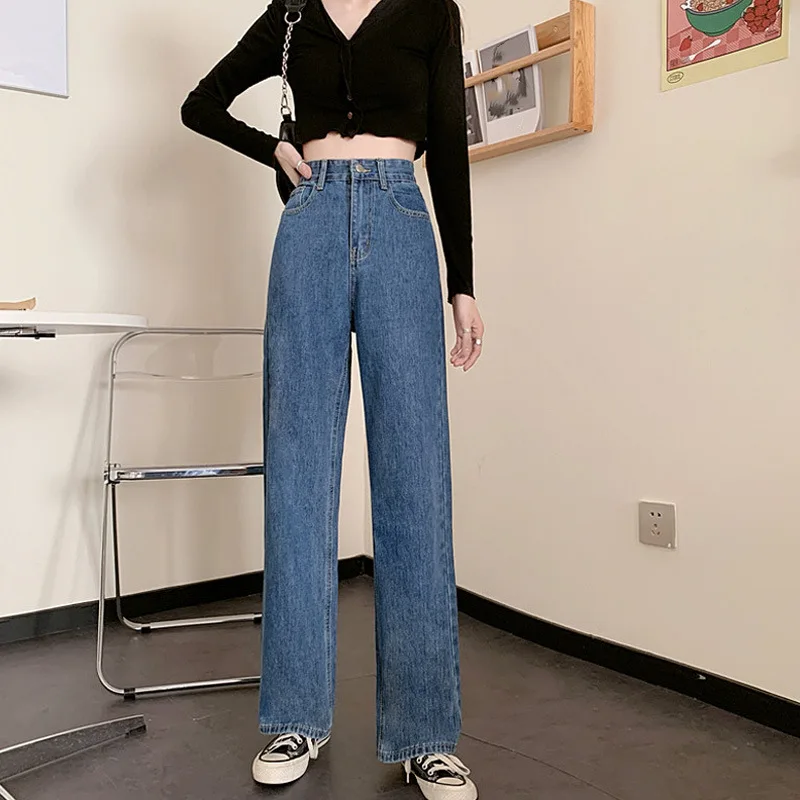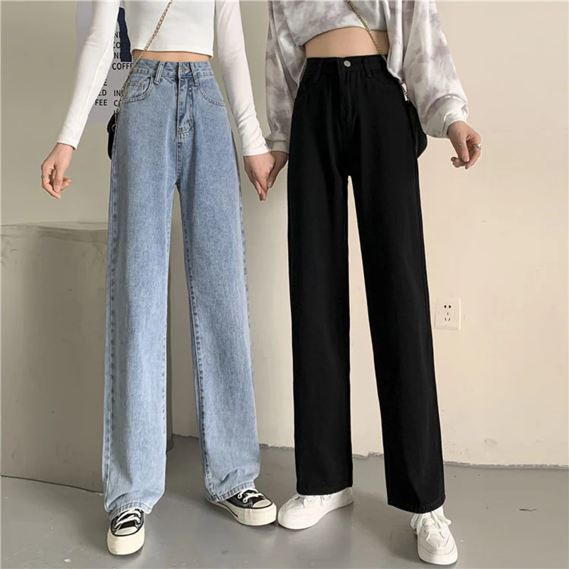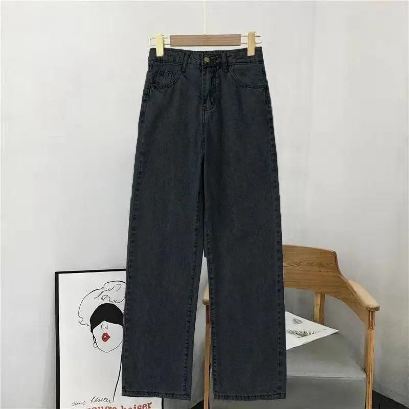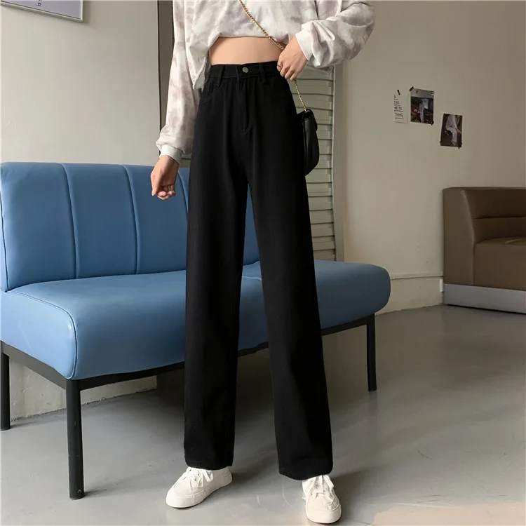 Джинсы Женские однотонные в Корейском стиле, модные прямые свободны...