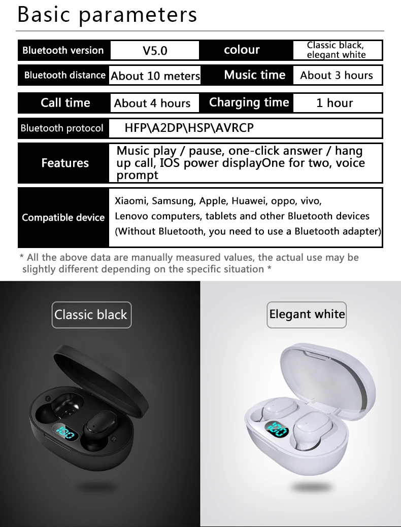 TWS E6S Bluetooth-наушники; Беспроводные наушники для Xiaomi Redmi ...
