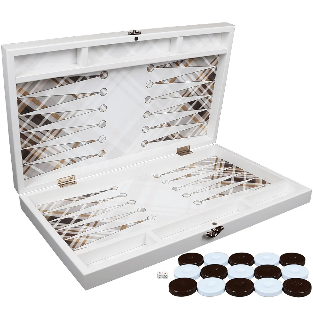 Наслаждайтесь игрой в нарды дома, в офисе и в любом месте. Вы можете использовать клетчатые нарды в течение многих лет с его высококачественной внешней поверхностью и материалом с деревянным рисунком и камнями.