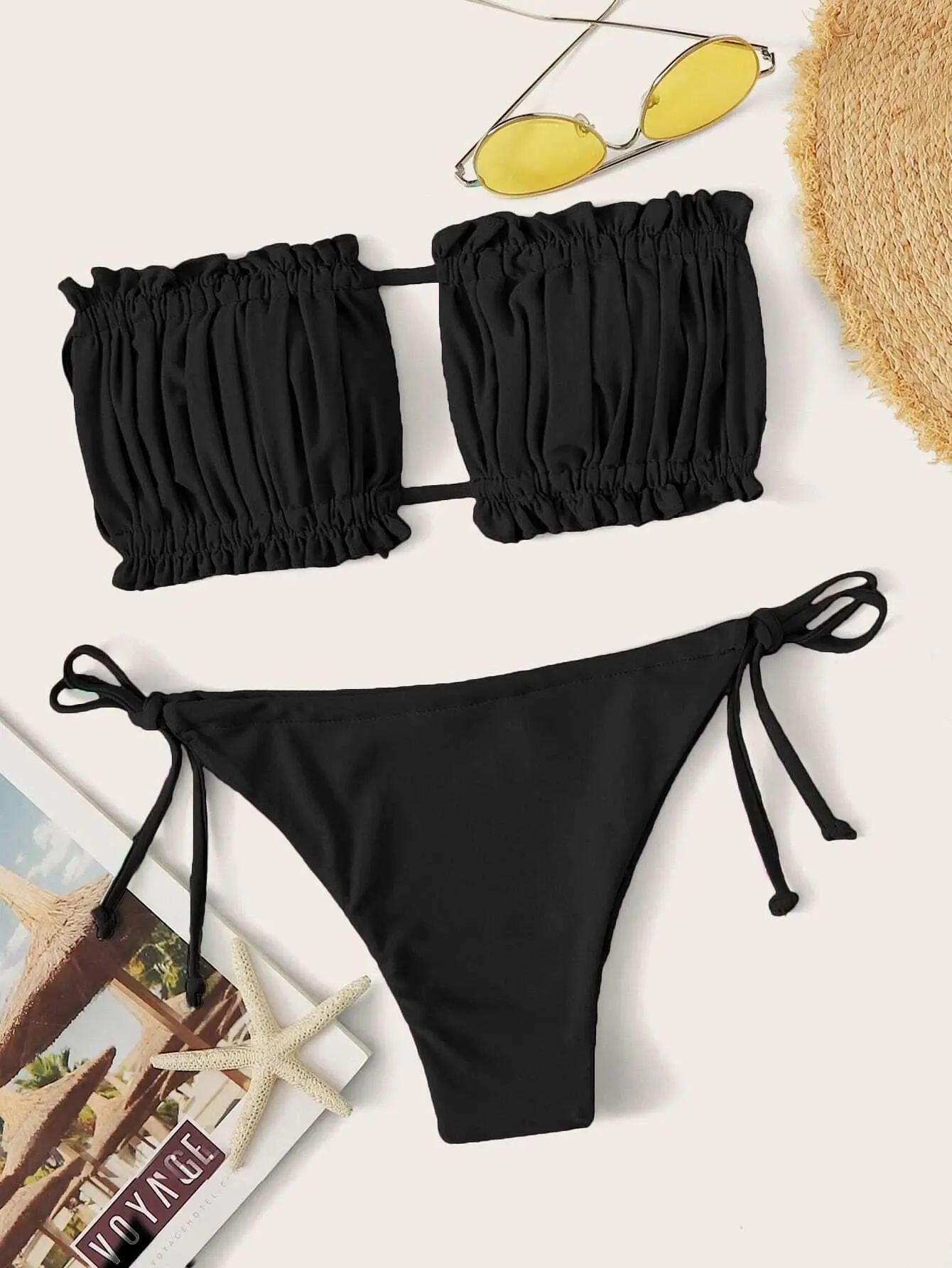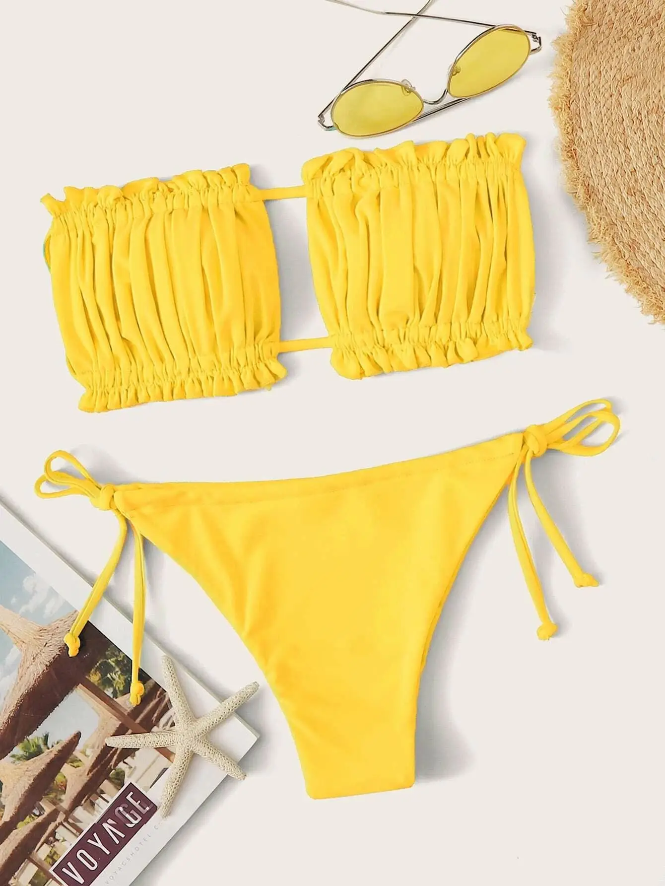Новое поступление 2022, бикини, Женский комплект бикини с рюшами и оборками, бандо, с завязкой сбоку, купальник из двух предметов