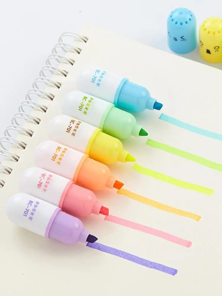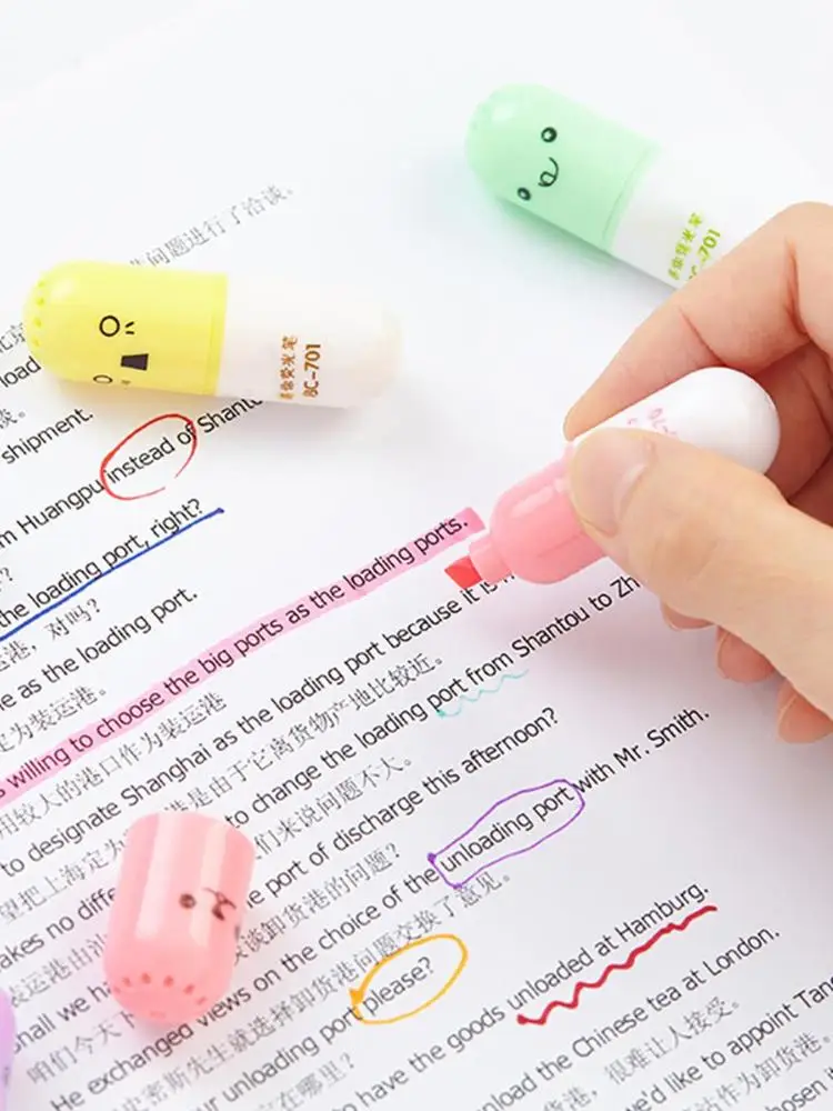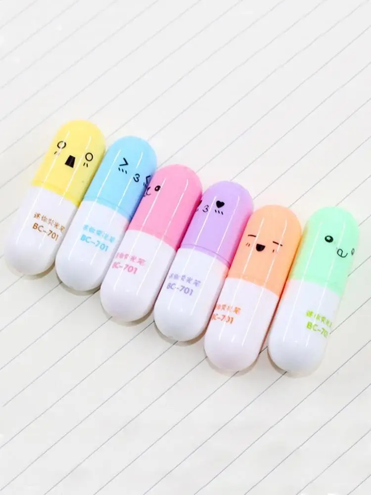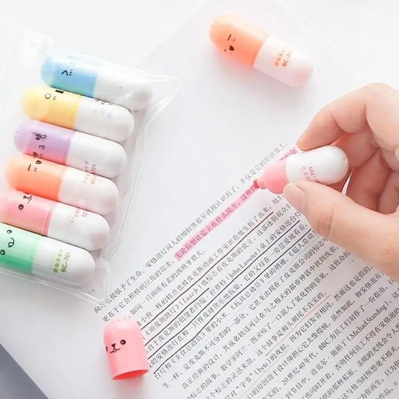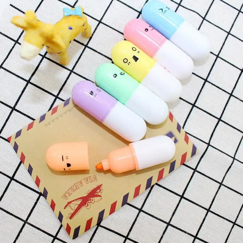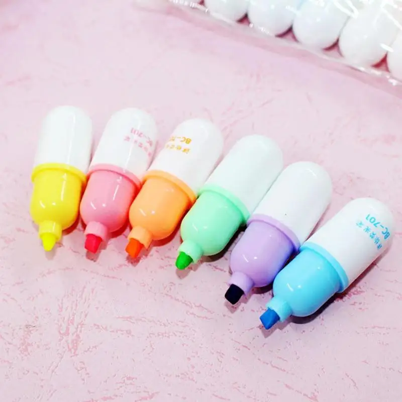 Мини-капсулы, ручка-хайлайтер Kawaii, витамин, подсвечиватель, школьная фотография, пигмент, канцелярские товары, вспомогательный маркер, Официальный B6i5