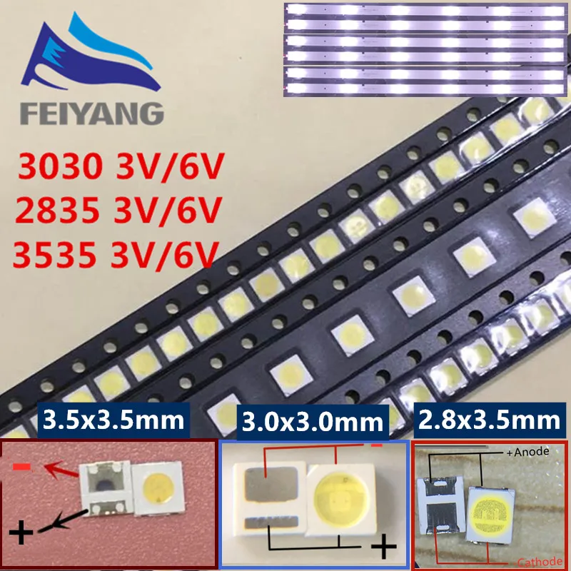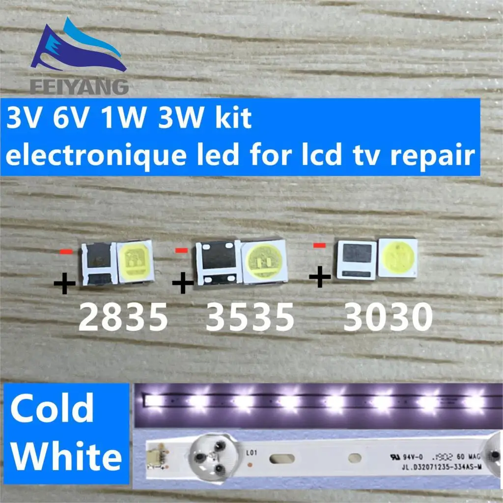50-100 шт., светодиодная подсветка для телевизора LG 2835 3030 3535 3 в 6 в 1 Вт 3 Вт