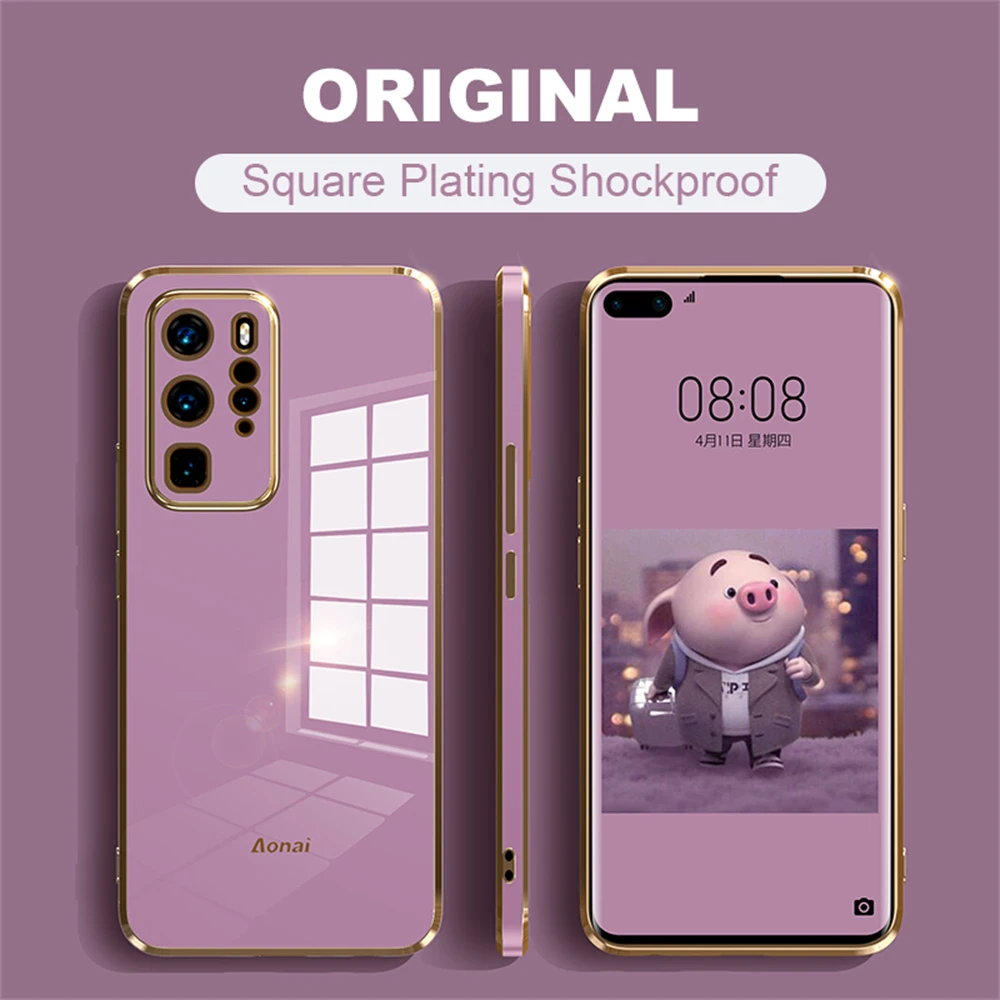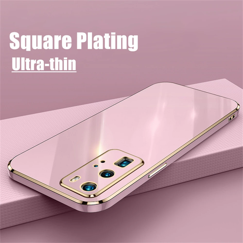 Мягкий силиконовый чехол с квадратным покрытием для телефона Huawei P50 Pro P40 Lite P30 P20 P Smart Mate 40 30 20 20X 10, позолоченная задняя крышка