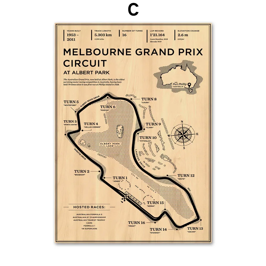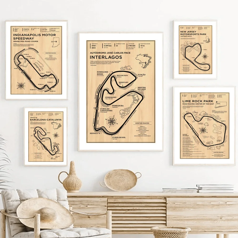 Плакат гонки на стену Формула один в стиле ретро, принт на стену, п...