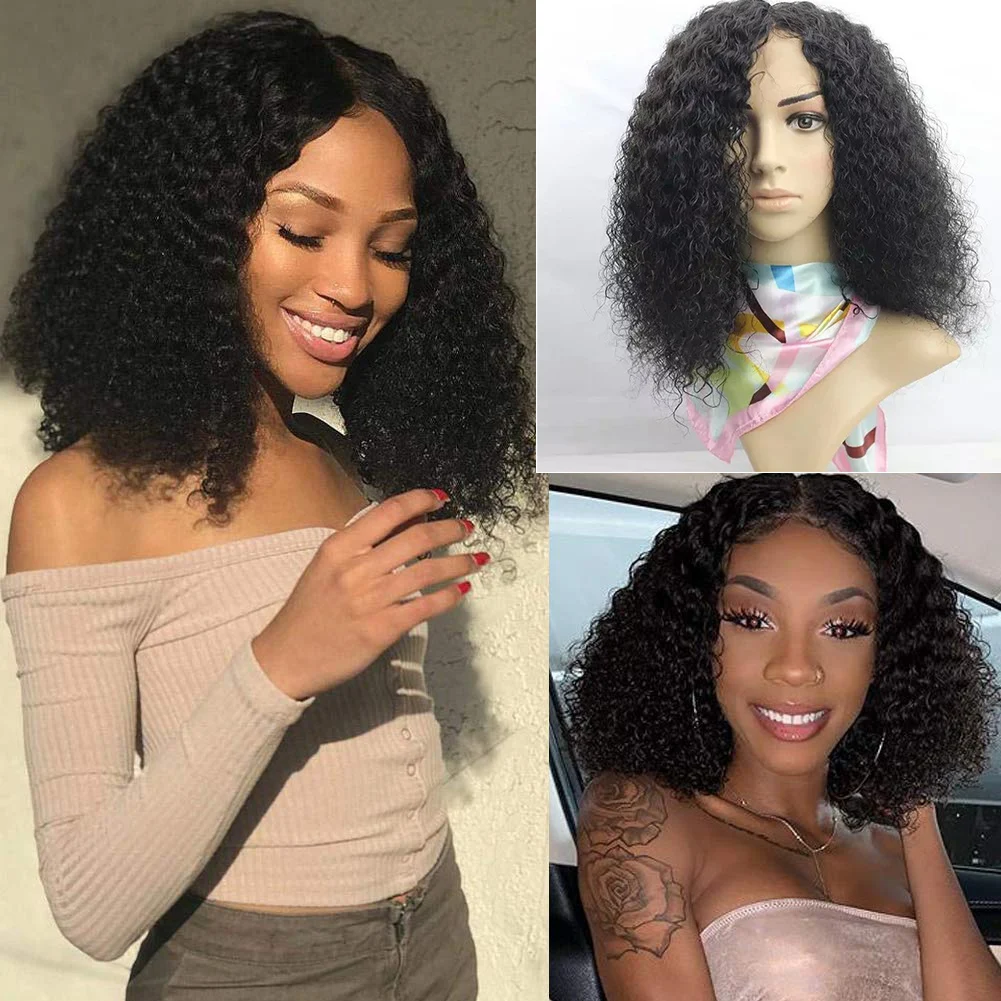 Короткий кудрявый 180 кудрявый синтетический кружевной передний парик Боб для чернокожих женщин с глубокой волной без клея для ежедневного Косплея