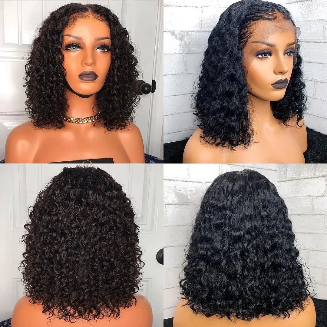 Короткий вьющийся Боб, кружевные передние человеческие волосы, иску...