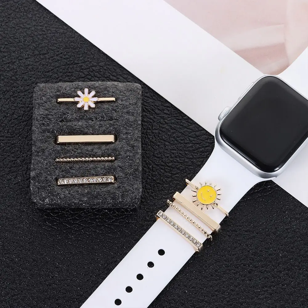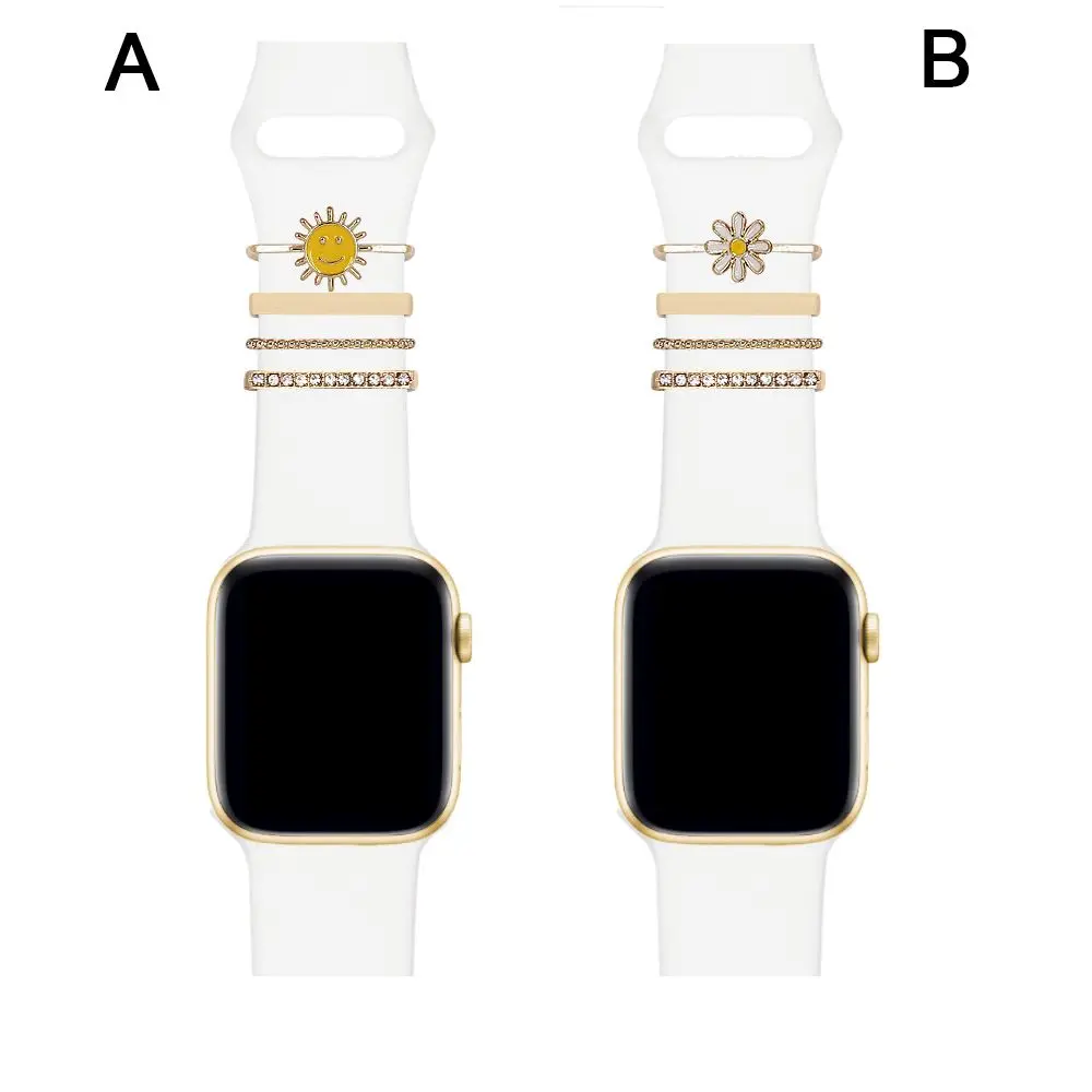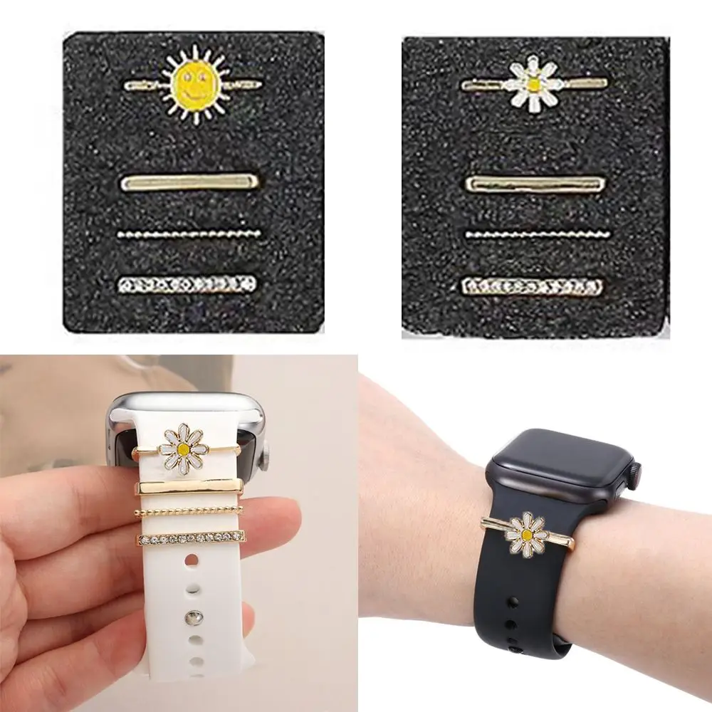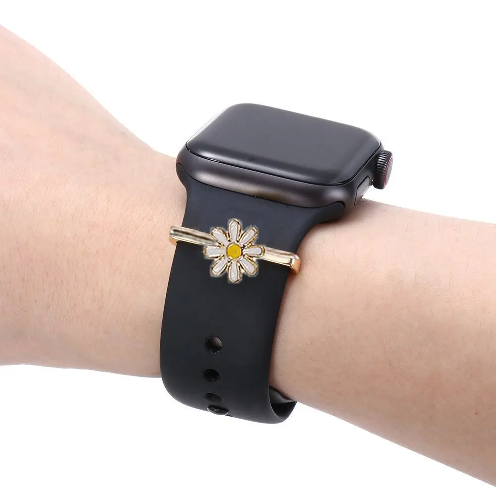 Металлические подвески, декоративное кольцо для Apple Watch, ремешок, цветок, солнце, Алмазное украшение, силиконовый ремешок для смарт-часов, аксессуары для iwatch