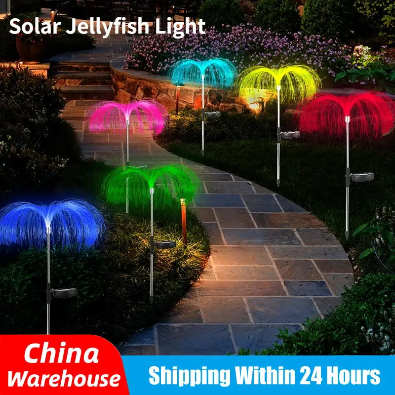 Наружная Солнечная садовая лампа с уникальным дизайном форма медузы, изготовленная из высококачественного пластика и оптического волокна. Он устойчив к коррозии и имеет прочную передачу на светильник и долговечность.
