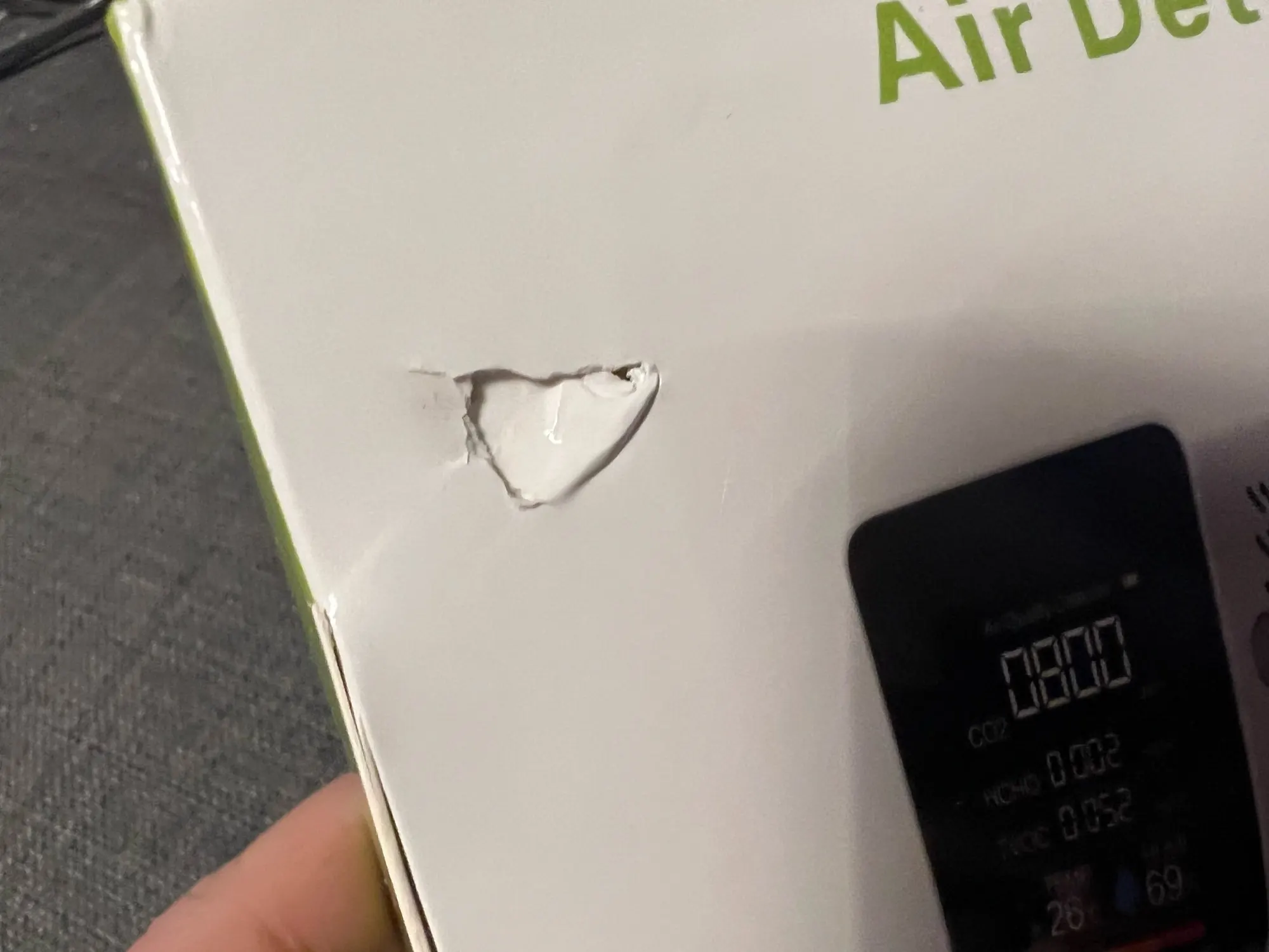 Большой ЖК-экран, различные цвета шрифта отображают различное качество воздуха, зеленый 400-799ppm, желтый 800-1199ppm, оранжевый 1200-1599ppm, красный 1600-1999ppm, 2000ppm выше четырех цветов мигают одновременно.