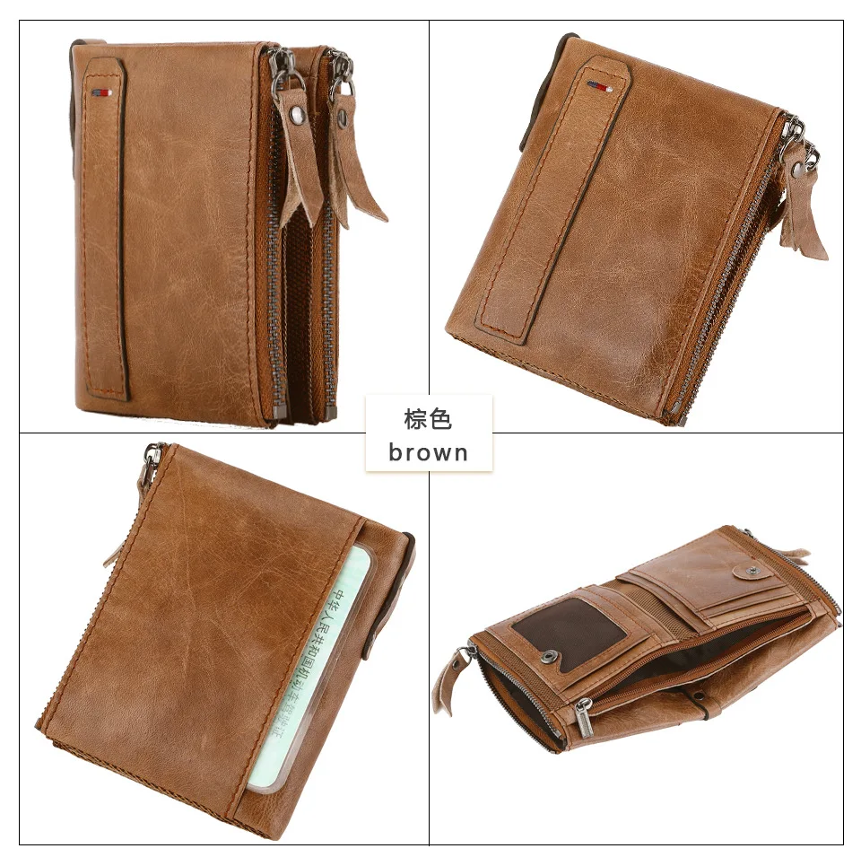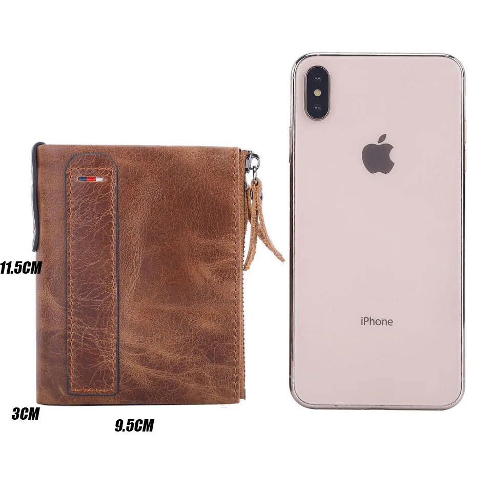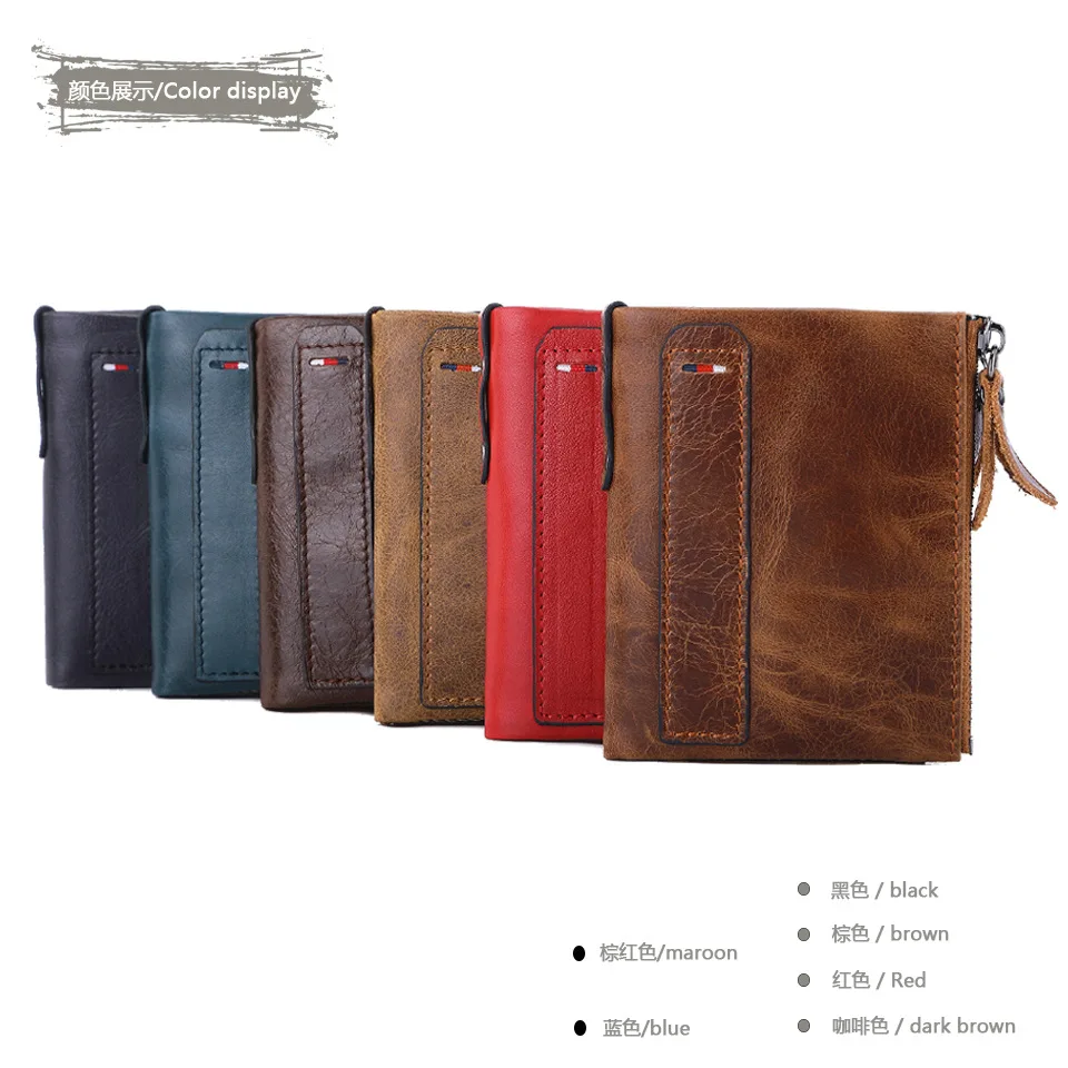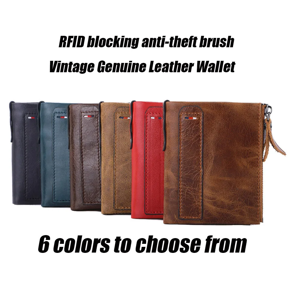 Винтажный кошелек из натуральной кожи для мужчин и женщин, складной бумажник на молнии с RFID-блокировкой, вертикальный держатель для визиток и карт