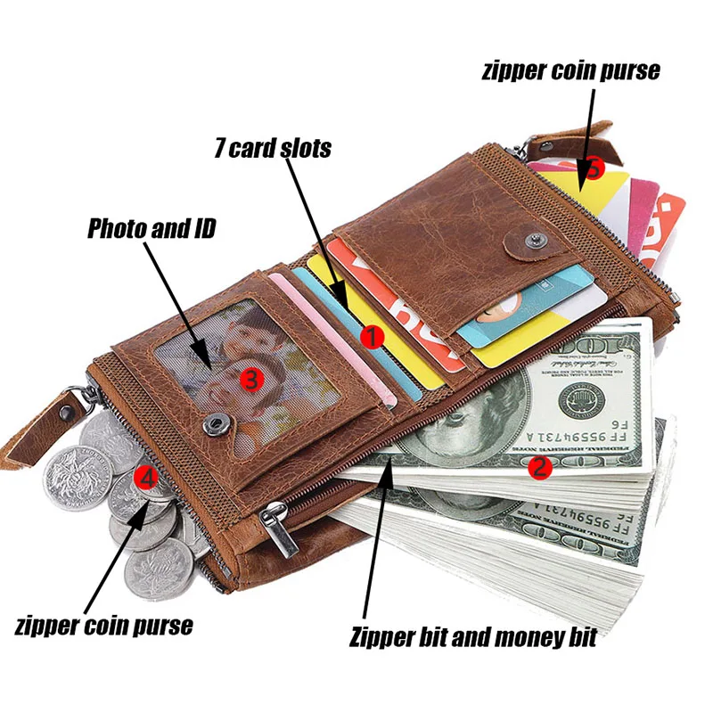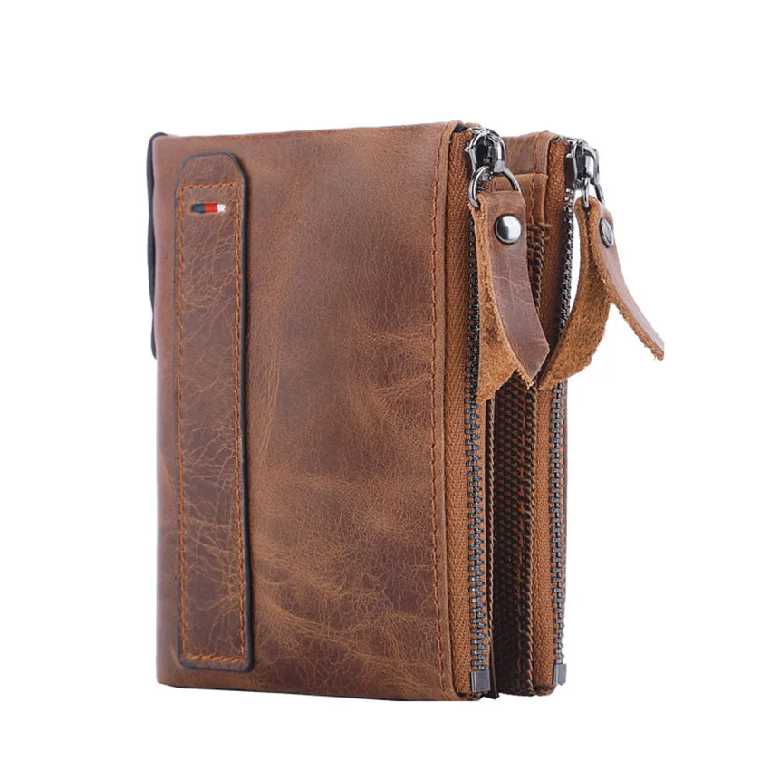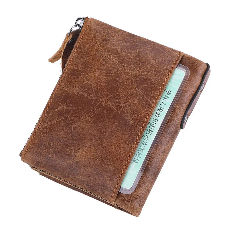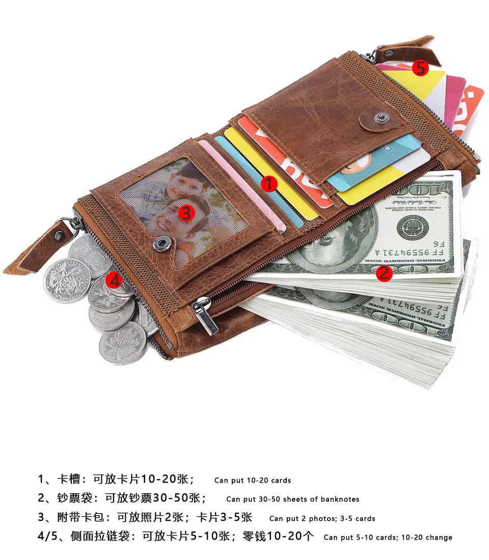 Винтажный кошелек из натуральной кожи для мужчин и женщин, складной бумажник на молнии с RFID-блокировкой, вертикальный держатель для визиток и карт