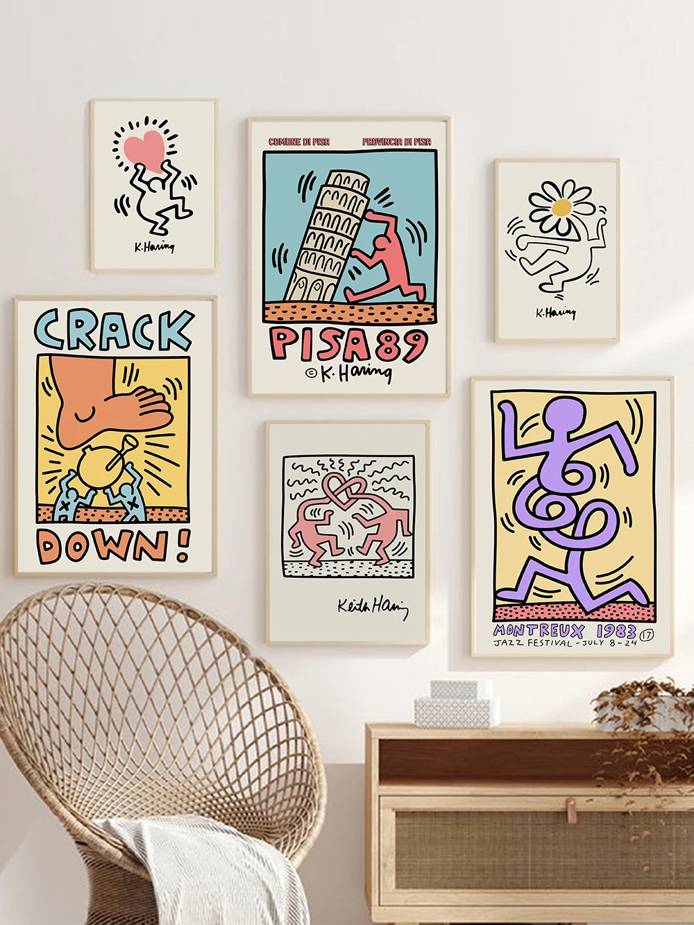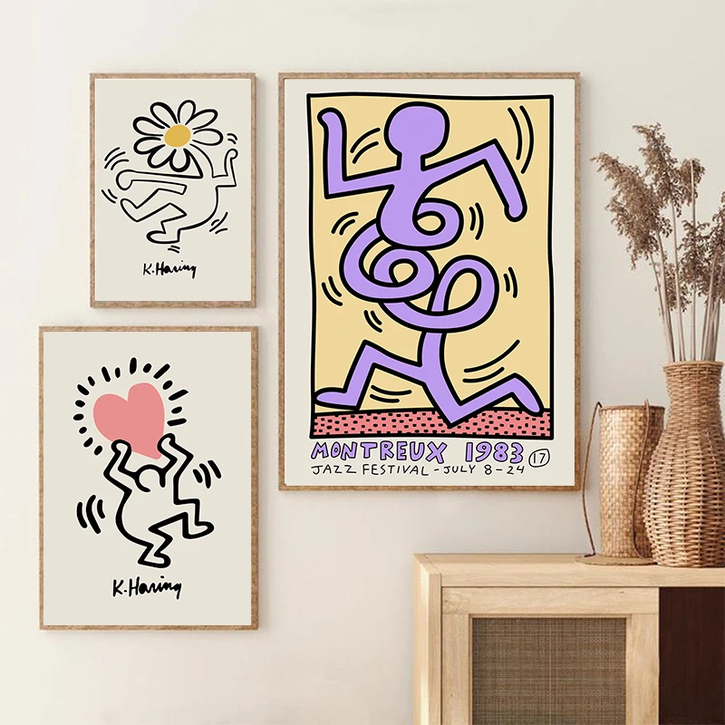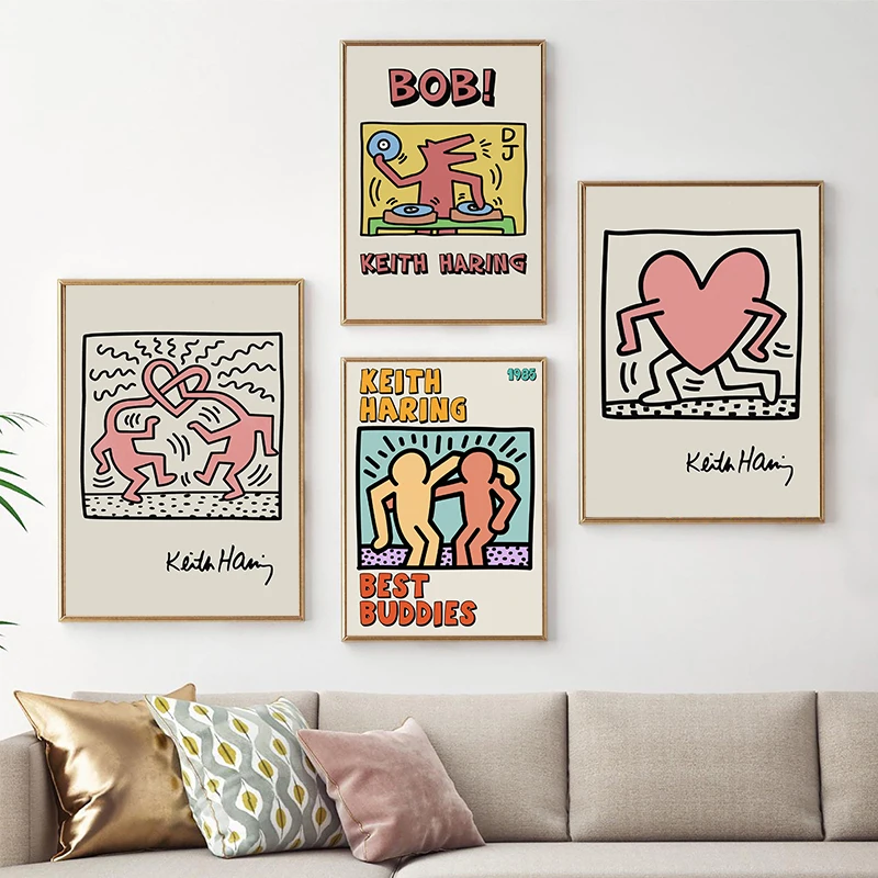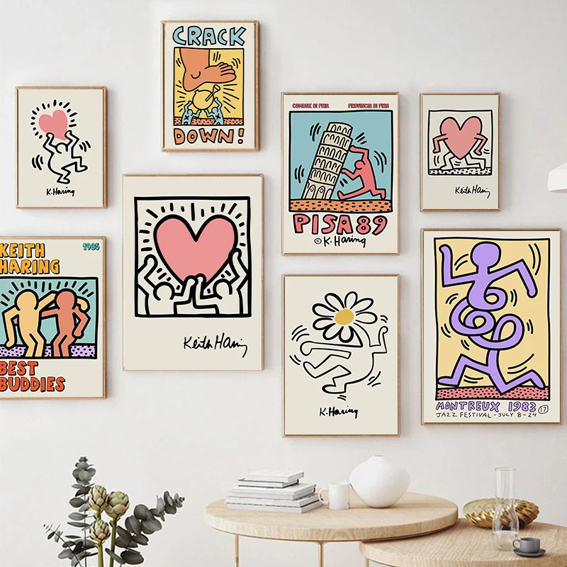 Кит художественная выставка Плакат Фреска Haring сердце абстрактная винтажная поп Картина на холсте Печать галерея настенные картины Домашний декор